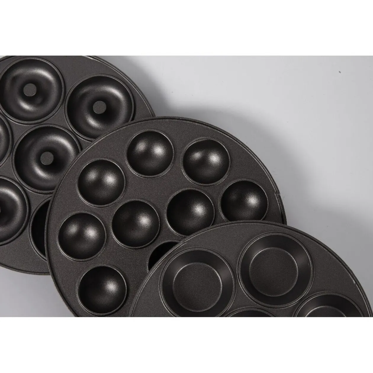 Machine à gâteaux multicakes Homday, 3 plaques : donuts, cakes pops et cup cakes, revêtement antiadhésif.