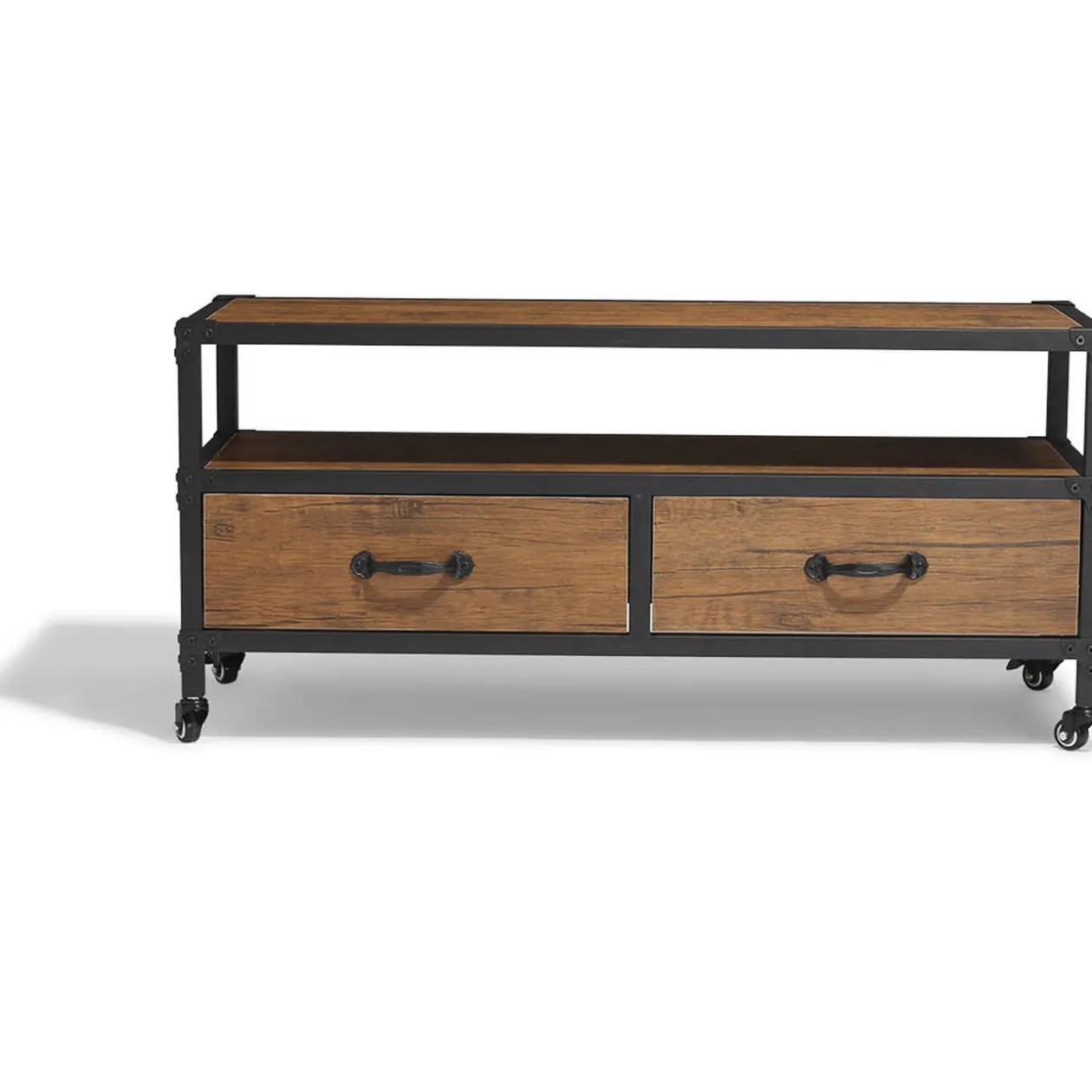 N’attendez plus et laissez-vous tenter par le meuble TV Chicago. Son style à la fois contemporain et élégant en fait une pièce tendance pour décorer votre intérieur. Avec son duo de couleurs acajou et noir, ce meuble à l’allure chaleureuse s’accordera à de nombreux types d’intérieurs. Créez une pièce conviviale au look moderne et profitez d’un espace de rangement supplémentaire pour glisser tous vos objets du quotidien. Résolument pratique grâce à ses 4 roulettes, ce meuble TV saura s’adapter à toutes vos envies et vous suivra dans les changements d’agencement de vos pièces. Le style à la fois urbain et élégant du meuble Chicago ne laissera personne indifférent ! Pour encore plus de style, n’hésitez pas à combiner ce meuble TV au reste de la gamme Chicago disponible dans notre catalogue.
