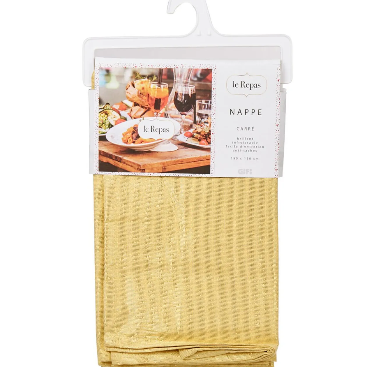 Nappe carrée brillante de couleur dorée, idéal pour la décoration de votre table à l’occasion des fêtes de fin d’année.