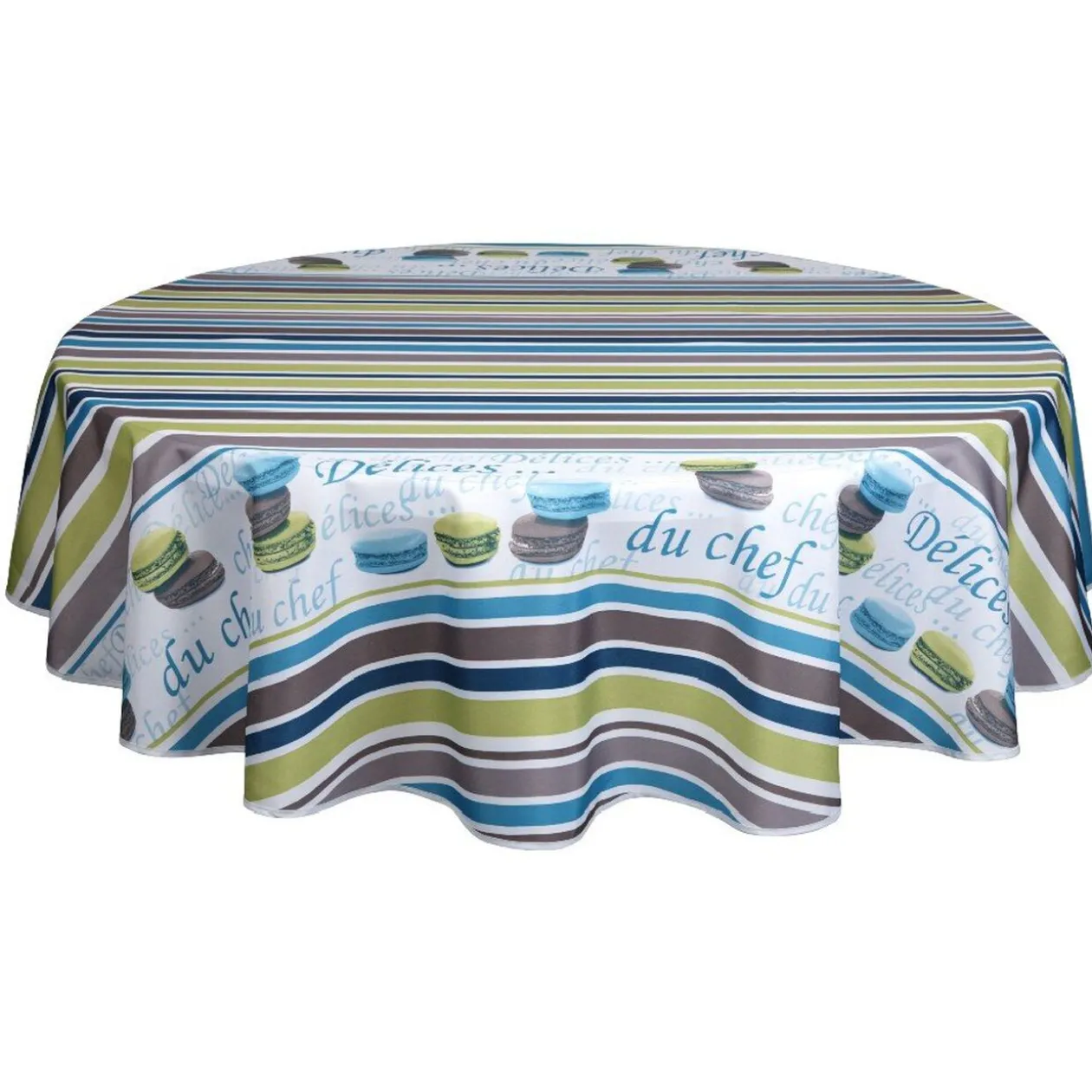 Nappe de table ronde design macarons et rayures, ø 180 cm, 100 % polyester.