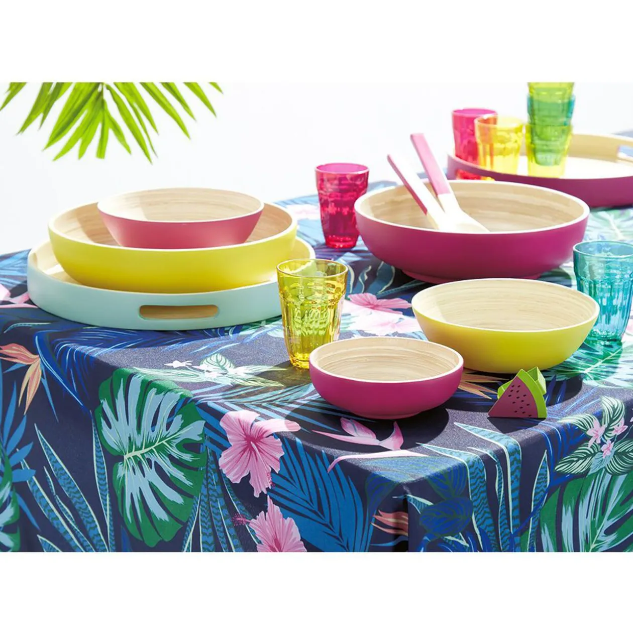 Nappe bleu rectangulaire en polyester au motif fleuri. Apportez une ambiance naturelle à votre table.