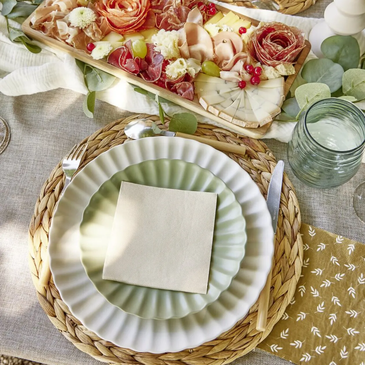 Ajoutez une ambiance chaleureuse avec cette nappe rectangulaire en tissu beige.