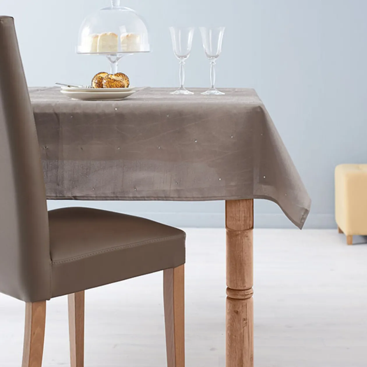 Nappe rectangulaire grise à strass, dim. 140×250 cm, polyester.