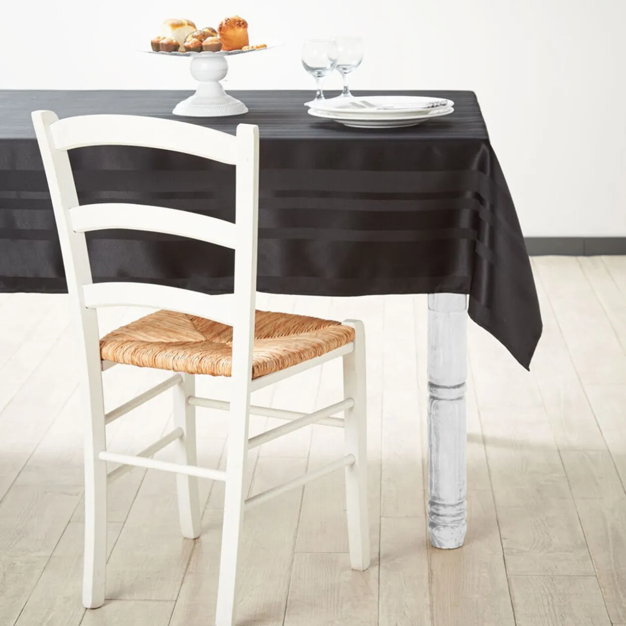 Nappe rectangulaire noire à rayures jacquard