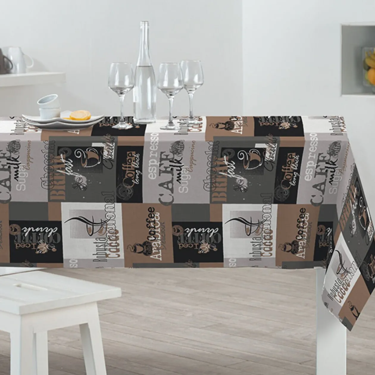 Nappe toile cirée rectangulaire design café, dim. 140×200 cm, plastique