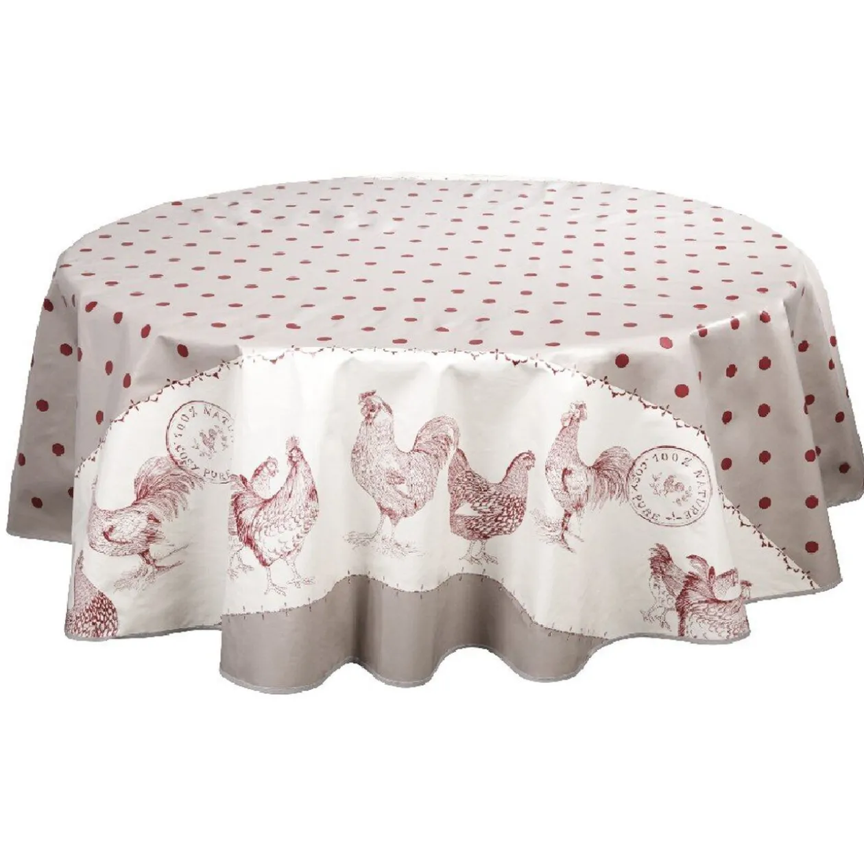 Nappe ronde design poule, ø 160 cm, PVC, polypropylène et polyester.