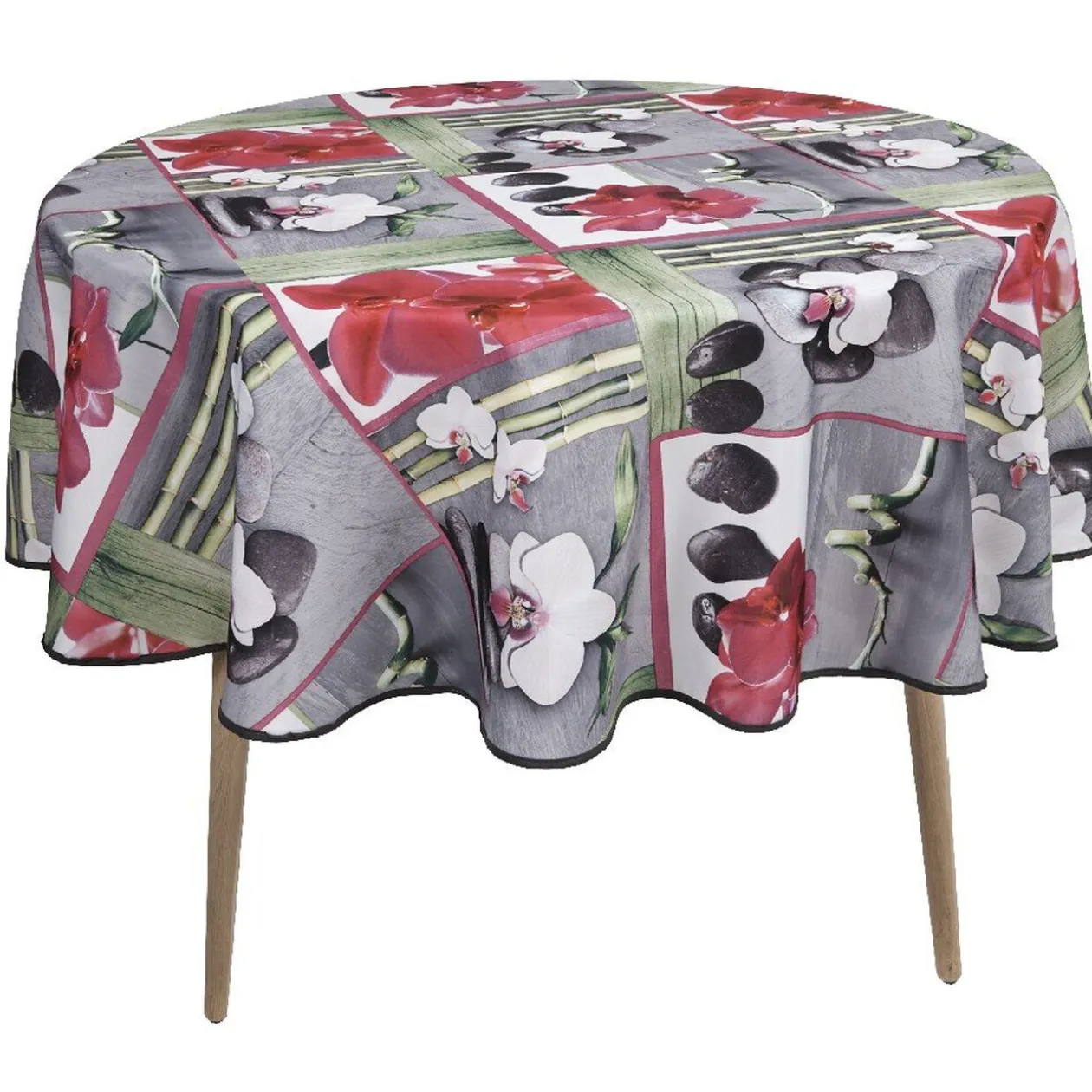 Décorez votre table avec cette nappe ronde en polyester traité antitâche et infroissable.