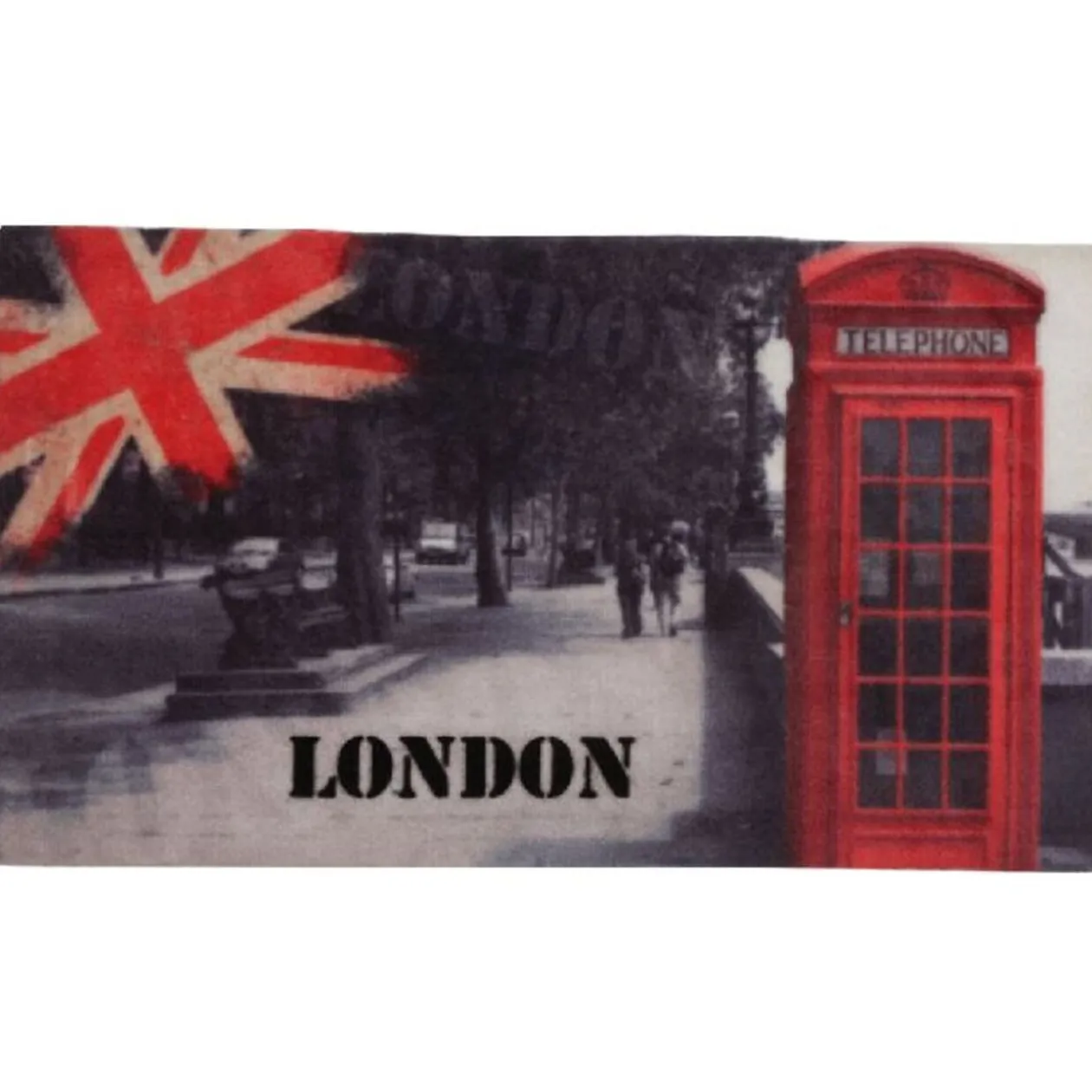Paillasson, dim. 70×40 cm, polyamide et caoutchouc. Diff. modèles (London ou Che Guevara), disponibilité selon arrivage.