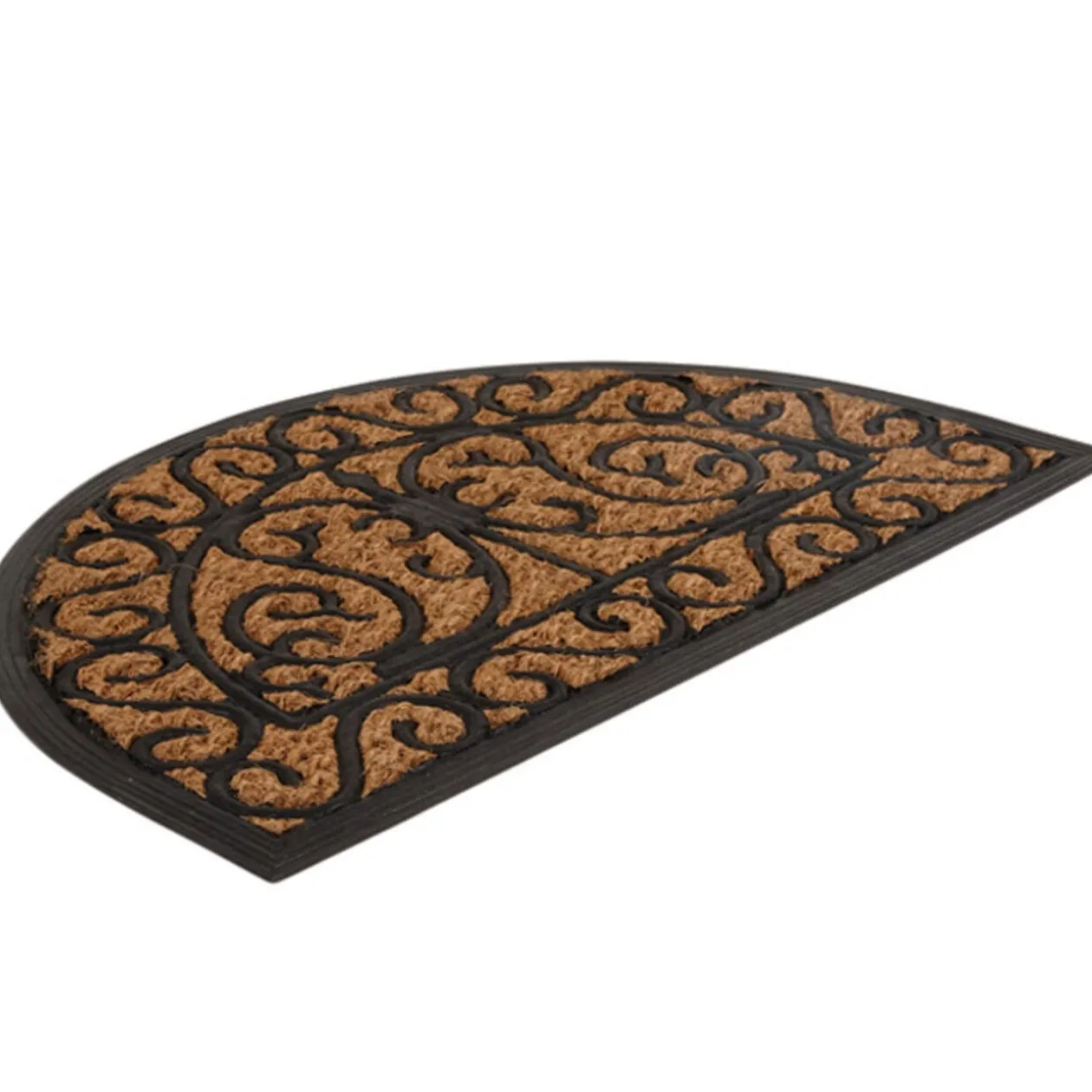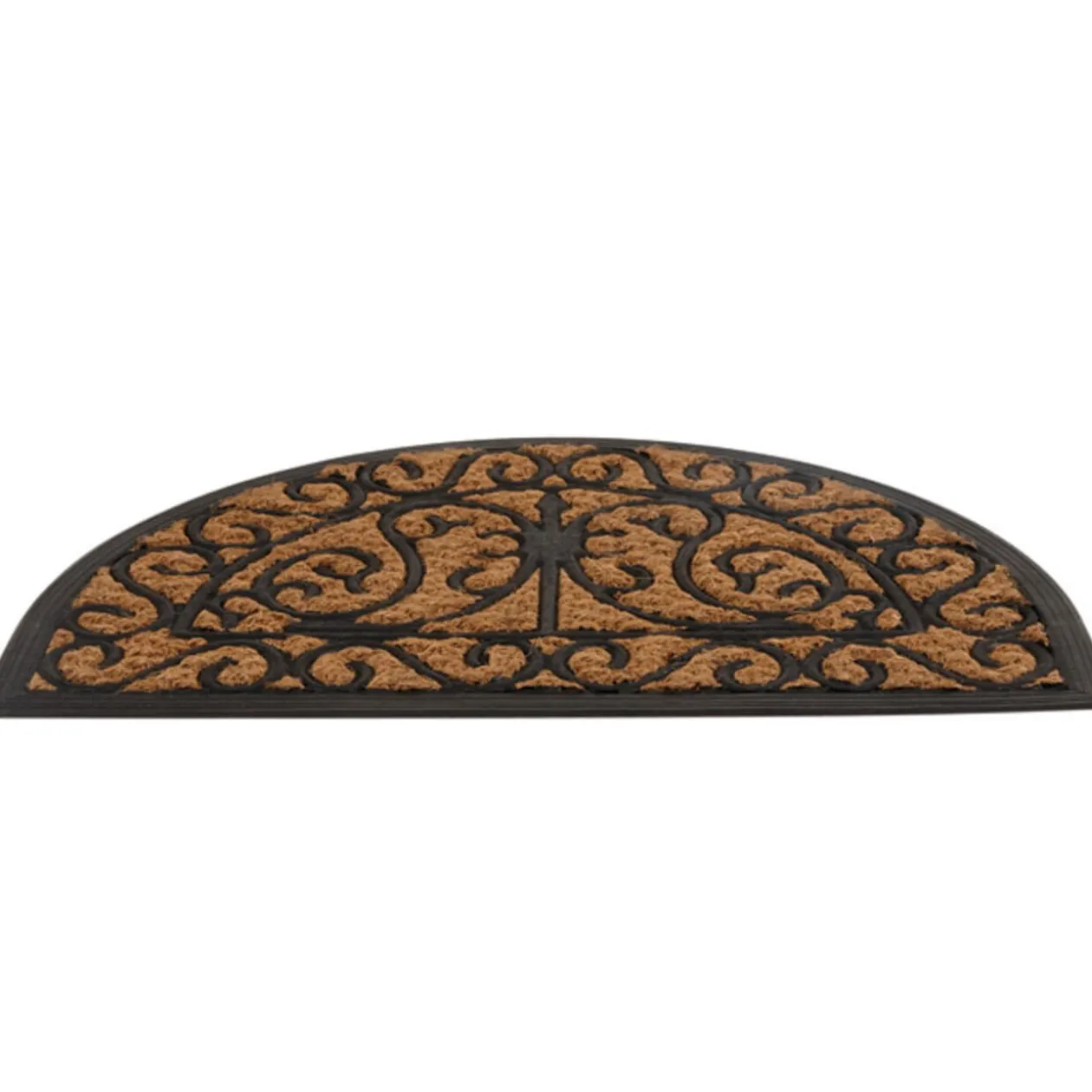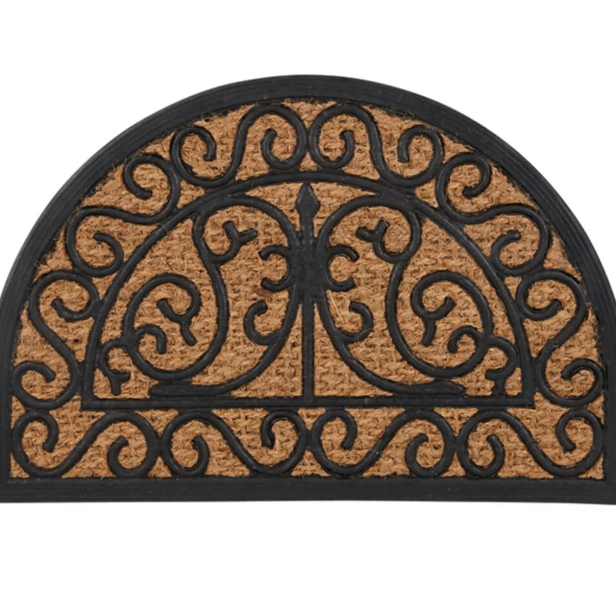 Paillasson demi lune, dim. 60×40 cm, fibres de coco et caoutchouc.