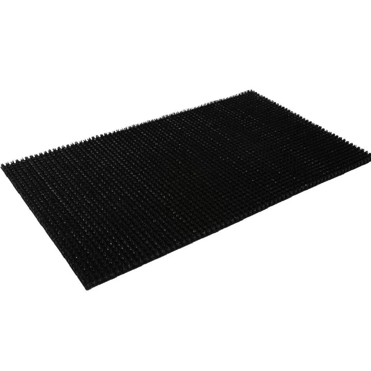 Paillasson grattant et résistant de coloris noir ou gris, dim. 75×45 cm, polyéthylène et polypropylène. Usage intérieur et extérieur. Disponibilité des coloris selon arrivage.