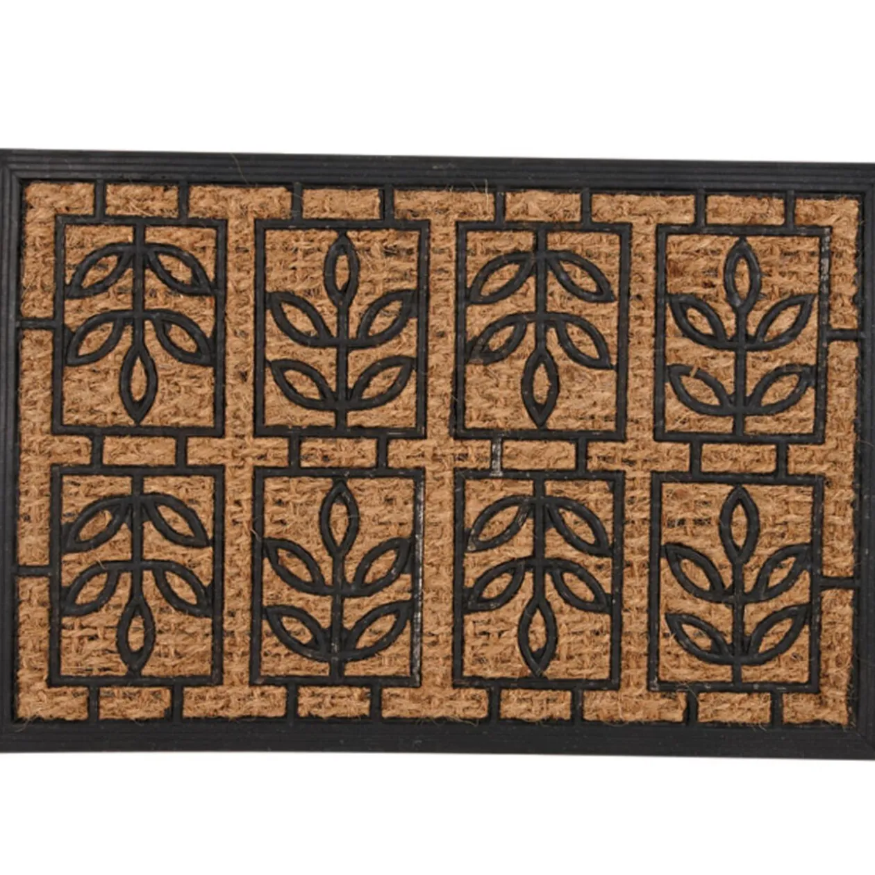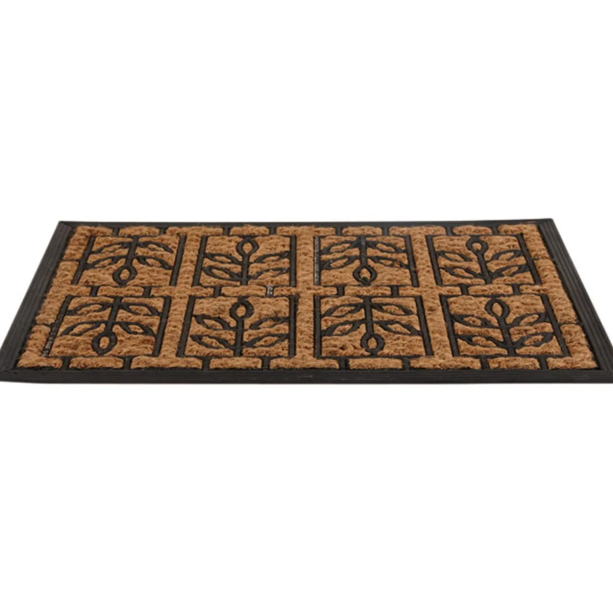 Paillasson rectangle fleur, dim. 60×40 cm, fibres de coco et caoutchouc.