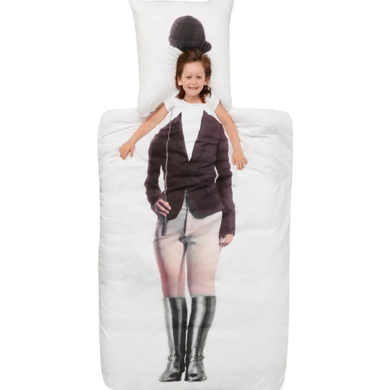 1 personne2 pièces1 housse de couette – Couleur : imprimé cavalière – Dimensions : L200 x l140cm- Matière(s) : Coton + Polyester1 taie d’oreiller- Couleur : imprimé cavalière- Dimensions : L63 x l63cm- Matière(s) : Coton + Polyester