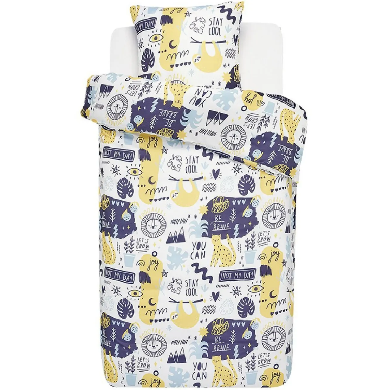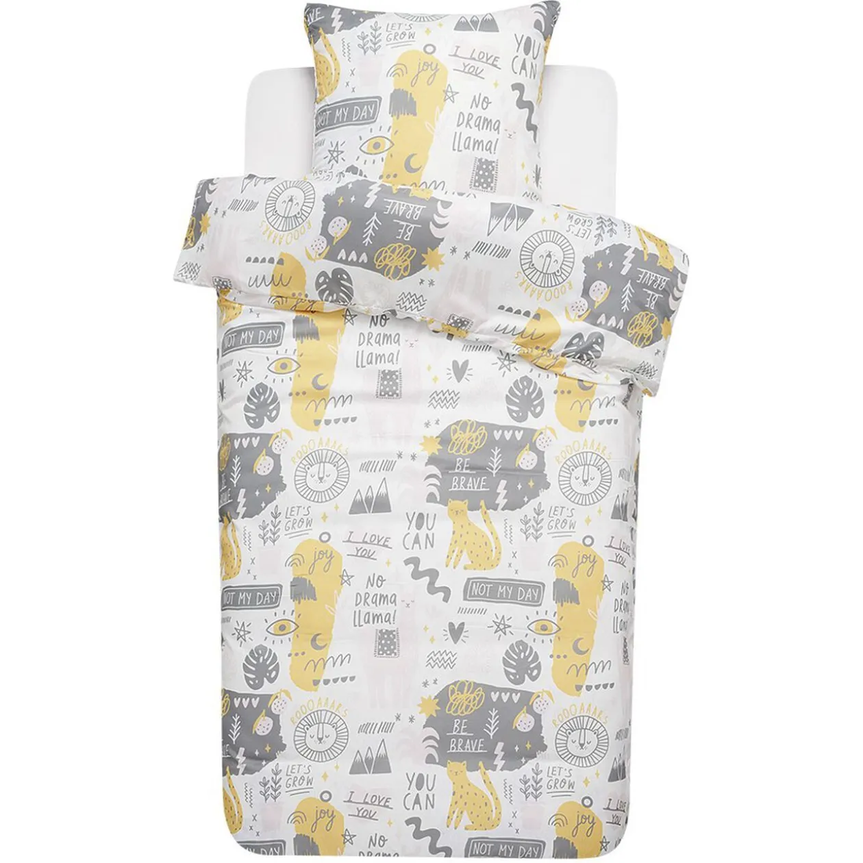 Set de housse de couette 140×200 cm avec taie d’oreiller 63×63 cm. Densité : 65g/m2. 4 modèles différents, motifs pour enfants. Couleurs au choix selon disponbilité en magasin.