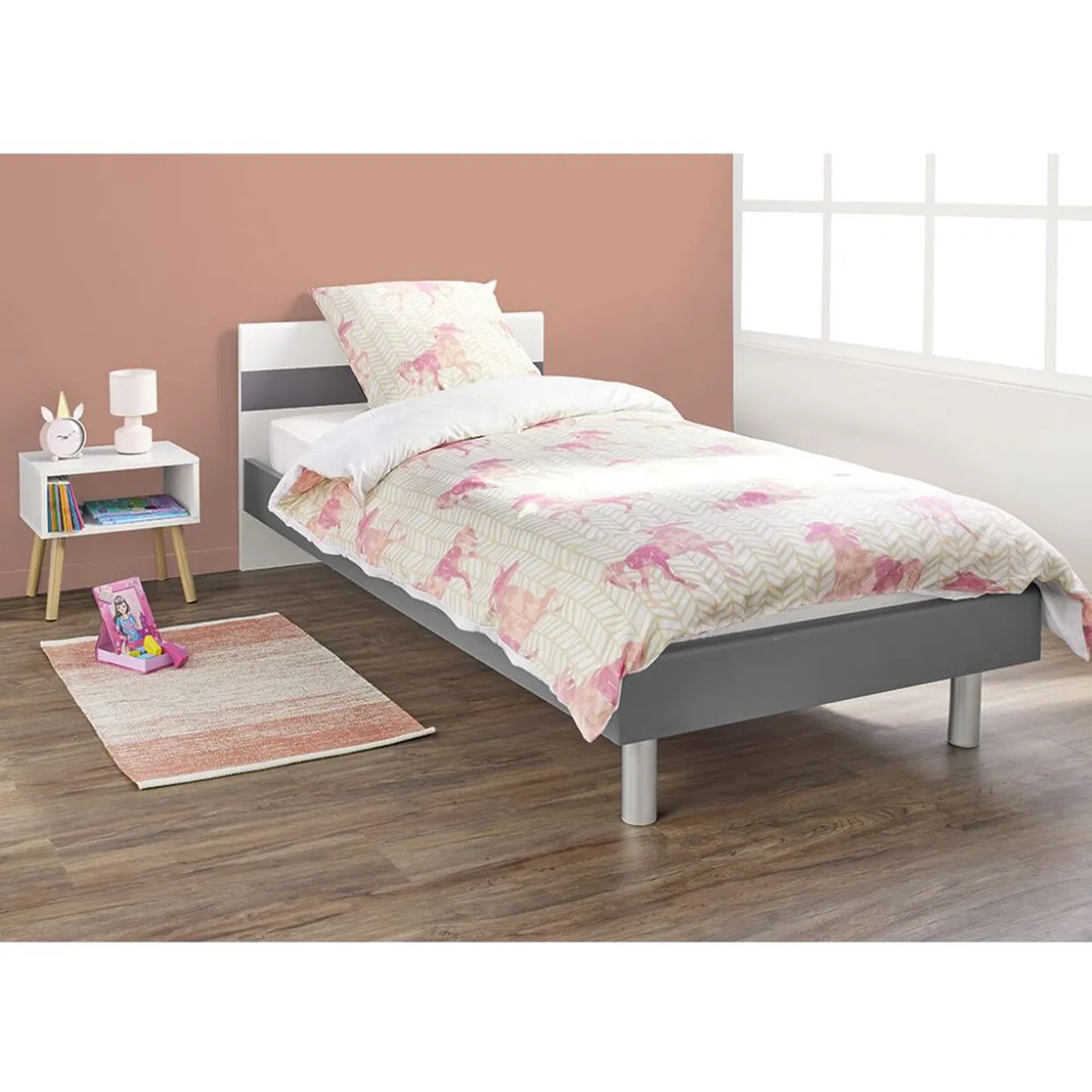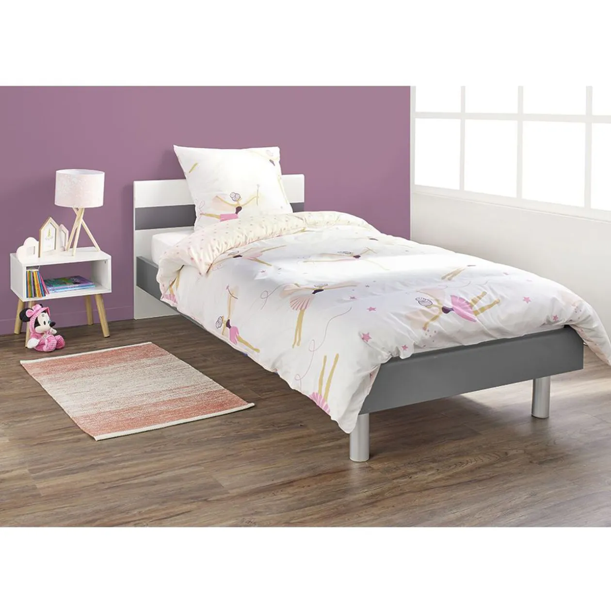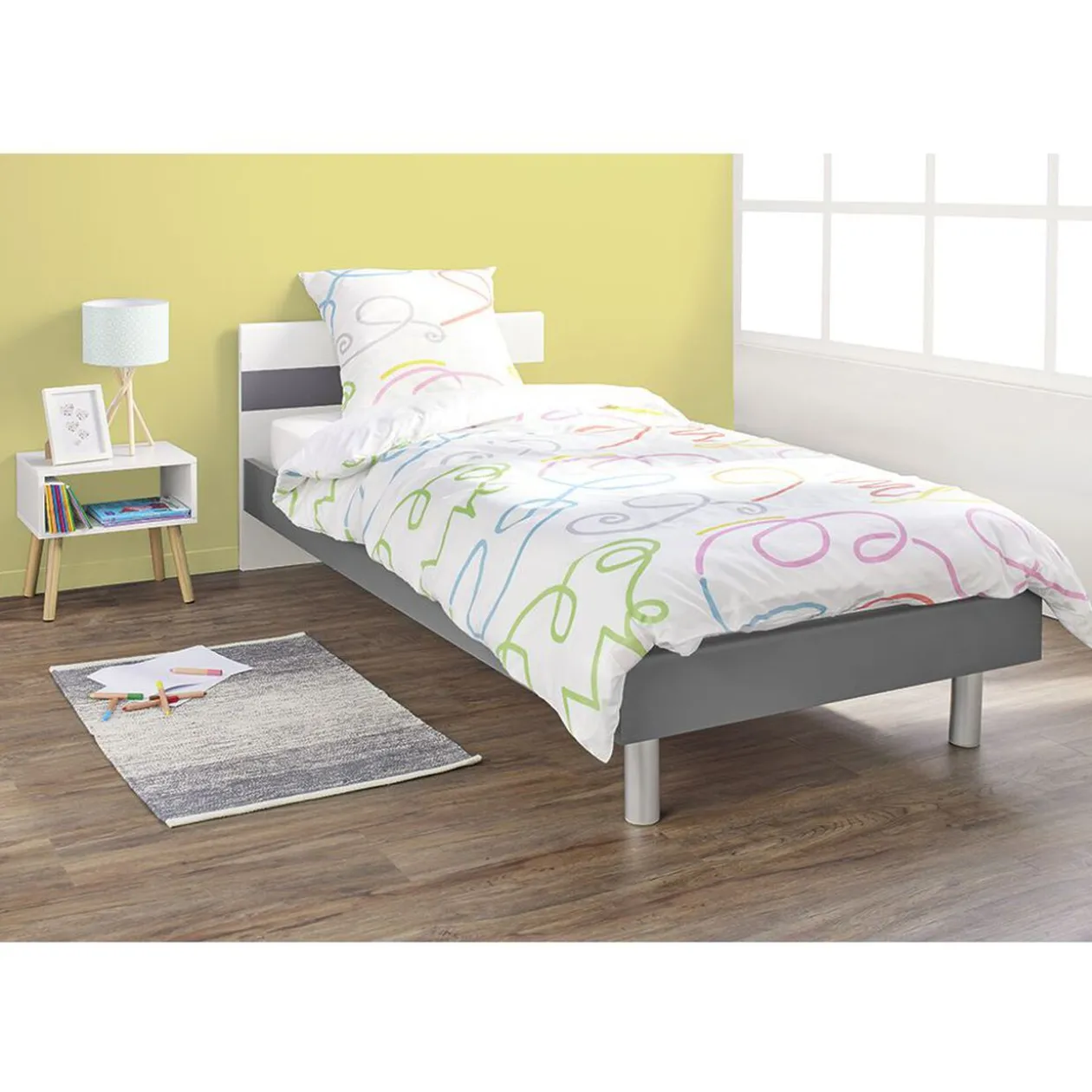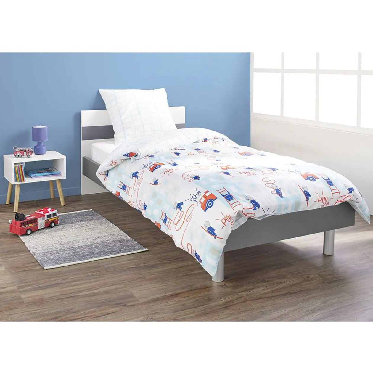 Parure de lit pour 1 personne avec housse de couette finition boutons et taie d’oreiller assortie.