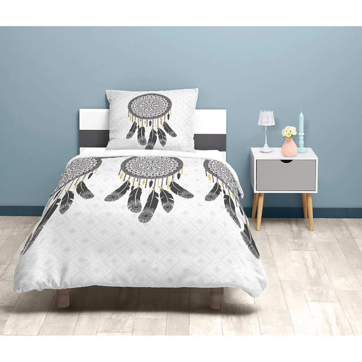 Faites le plein de design ethnique pour ajouter une note mystérieuse à votre chambre. Faites fondre la housse de couette blanche aux motifs attrape-rêves dans n’importe quelle décoration et posez la tête sur un oreiller rêveur.