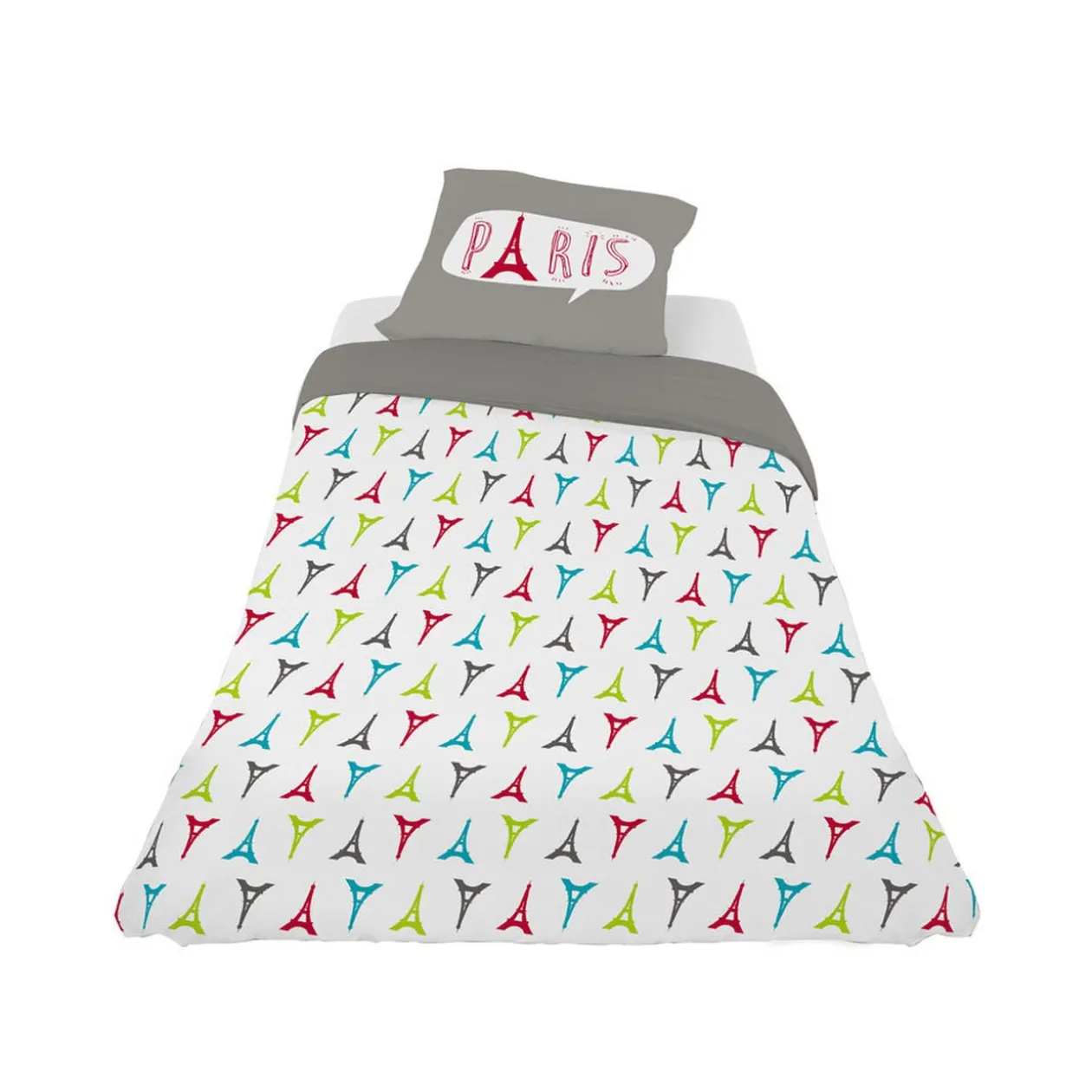 Parure de lit 1 personne design Tour Eiffel Paris.