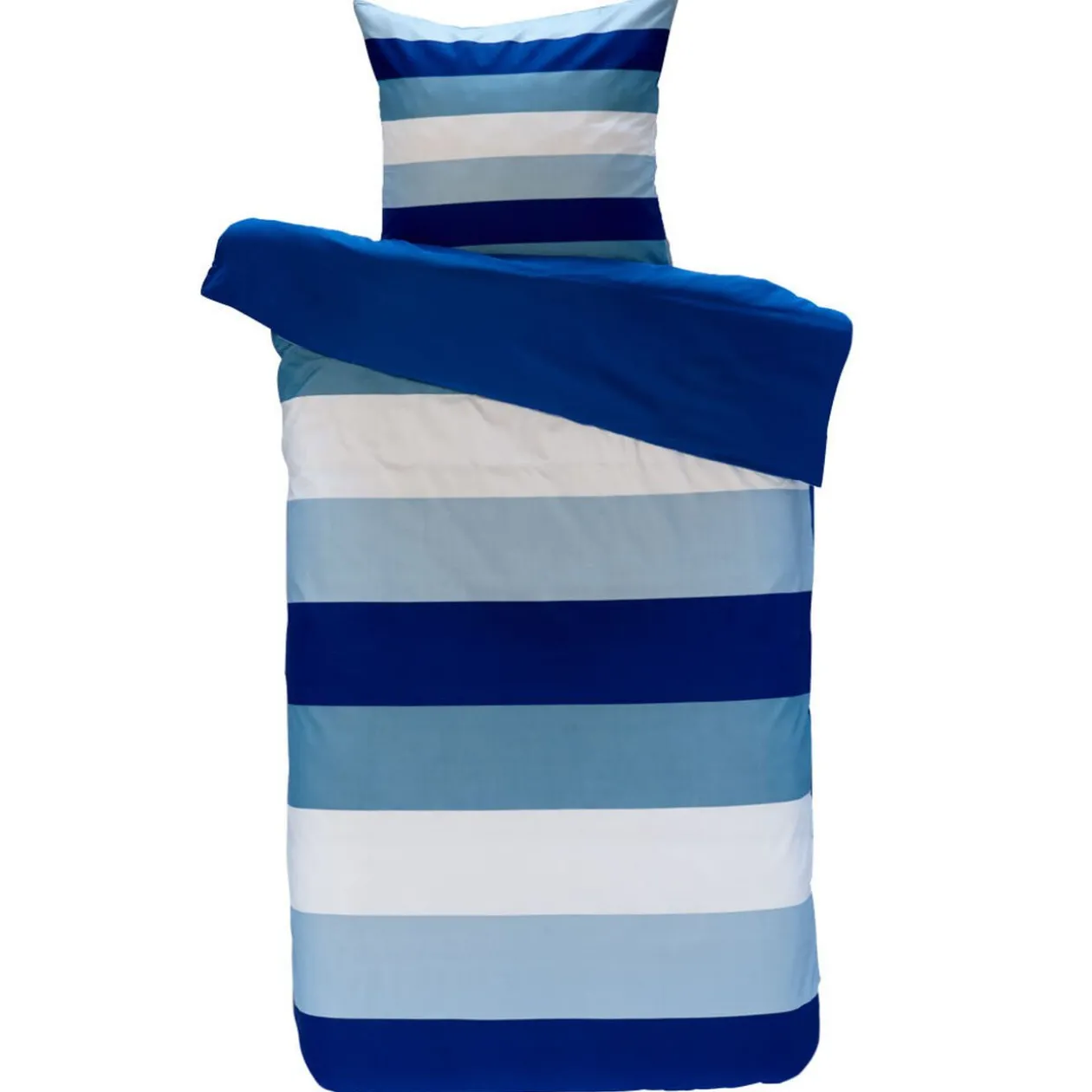 Parure de lit 1 place motif rayures bleues et blanches comprenant 1 housse de couette dim. 140×200 cm et 1 taie dim. 63×63 cm, polyester microfibre.