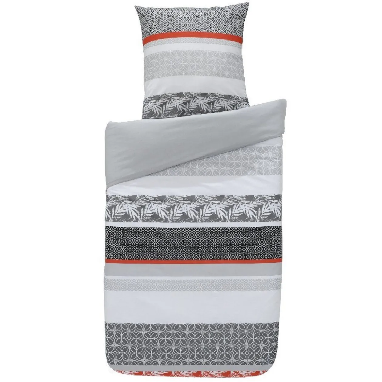 Cette parure de lit avec imprimé végétal et graphique comprend une housse de couette à 1 place 140 x 200 cm et 1 taie d’oreiller carrée coordonnée 63 x 63 cm.