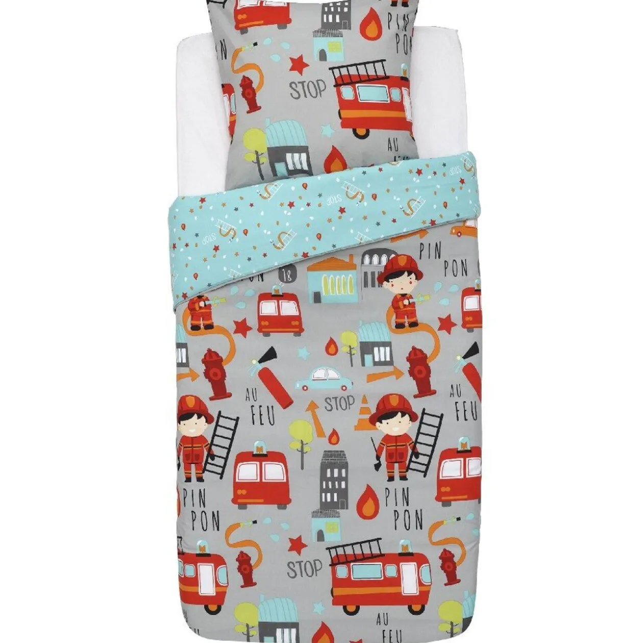 Offrez à votre petit soldat du feu la parure de lit de ses rêves avec cet ensemble multicolore imprimée pompiers.