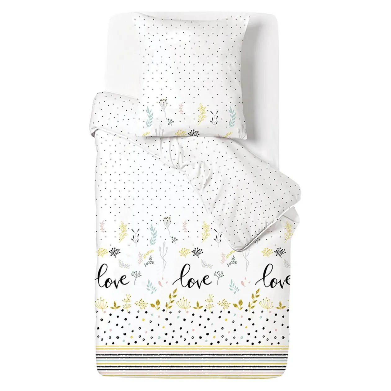 Parure de lit avec sa taie d’oreiller assortie.