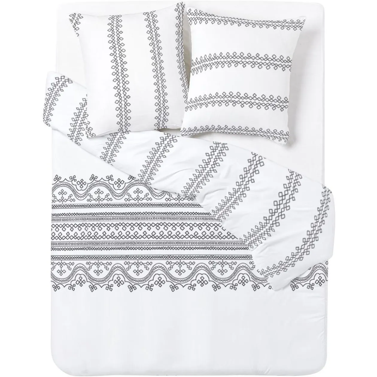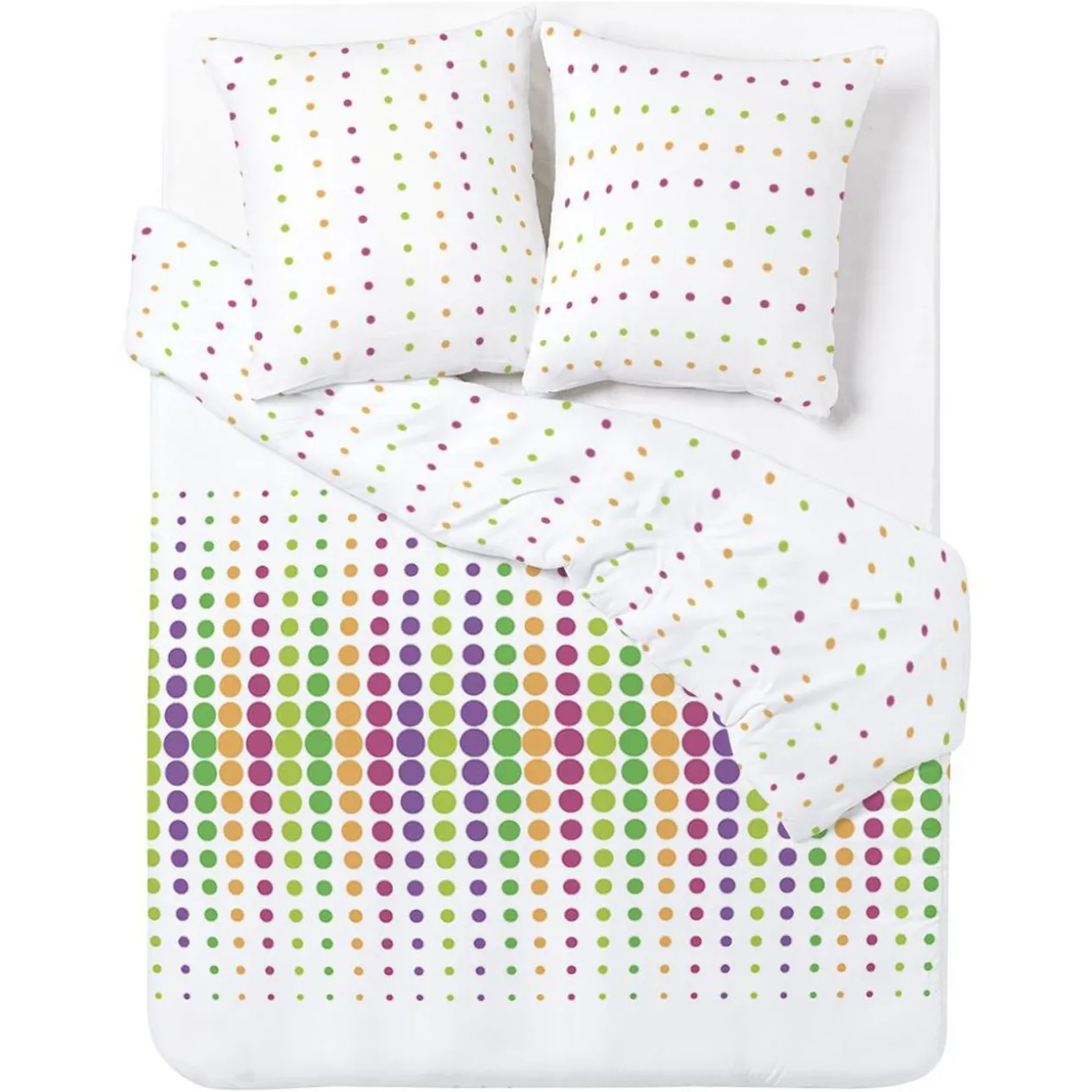 Parure de lit avec 2 taies d’oreiller assorties. Existe en 6 modèles, selon disponibilité en magasin.