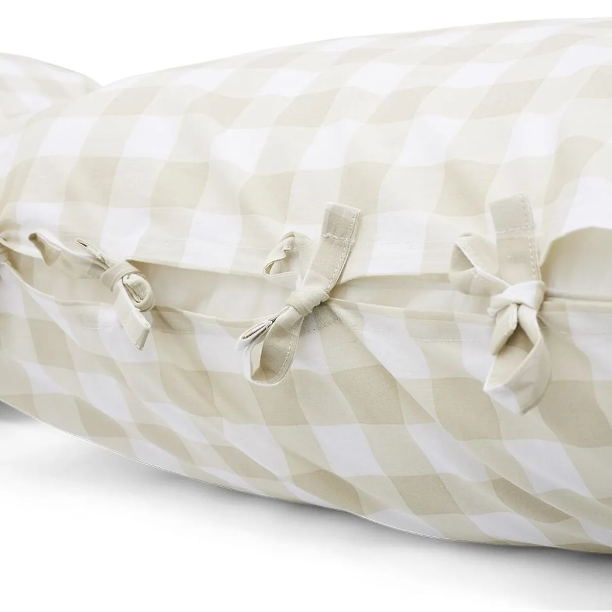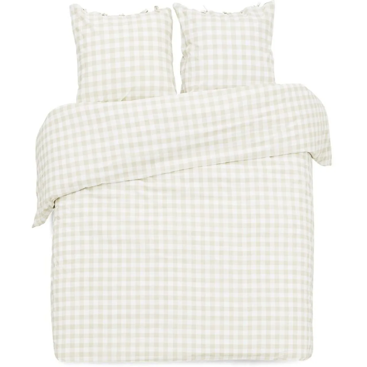 Cette parure de lit imprimée de petits carreaux quadrillés beiges et blancs sur chaque face viendra joliment habiller un lit en 140x190cm.