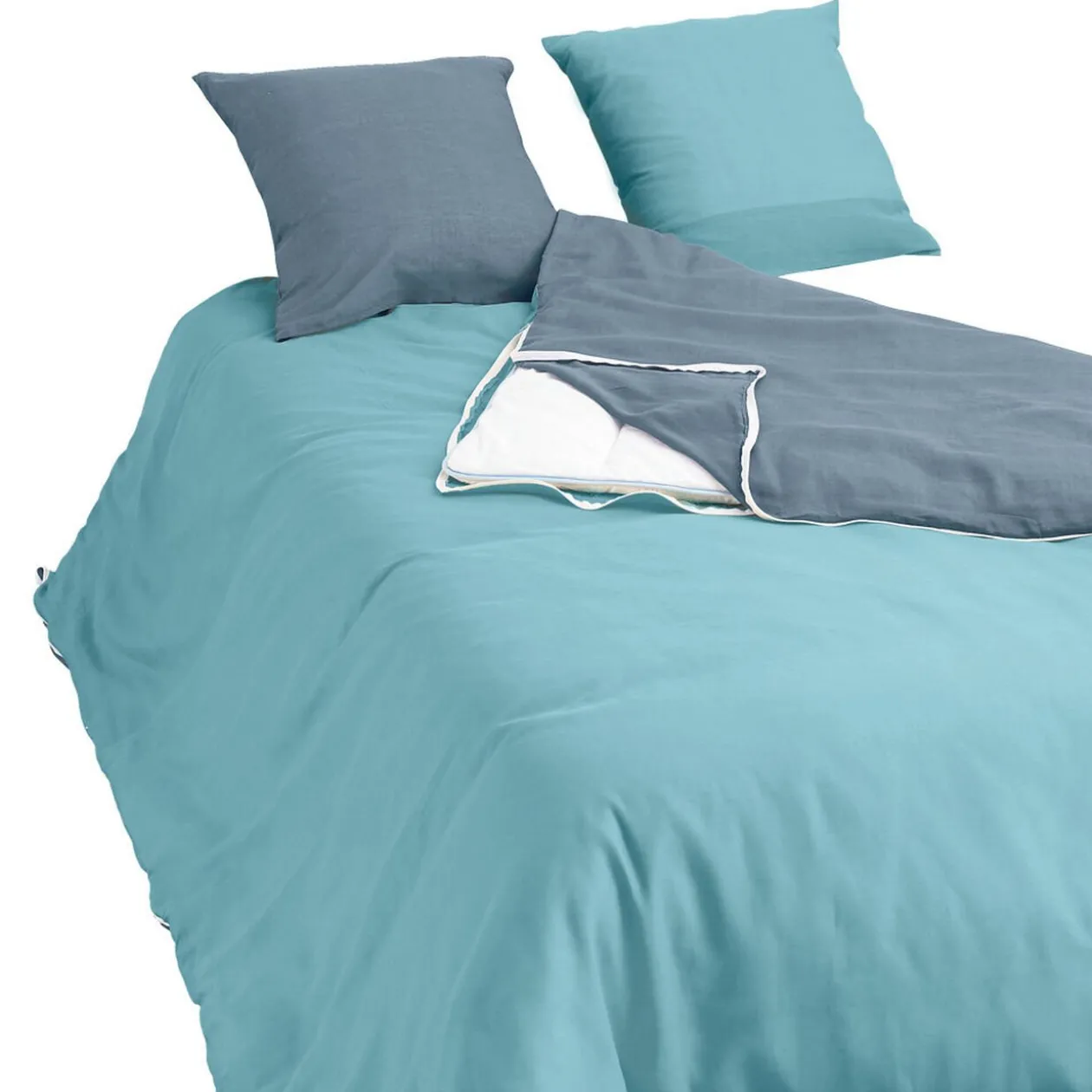 Cette parure de lit bicolore bleu ciel et bleu marine est idéale pour donner une ambiance fraîche et tendance à votre chambre.