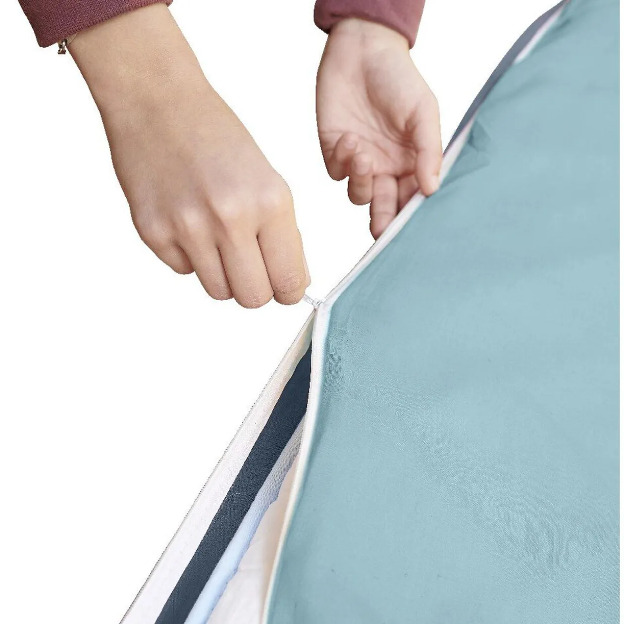 Astucieux! Pour enfiler votre couette, il suffit de dézipper la housse, déposer la couette et rezipper!