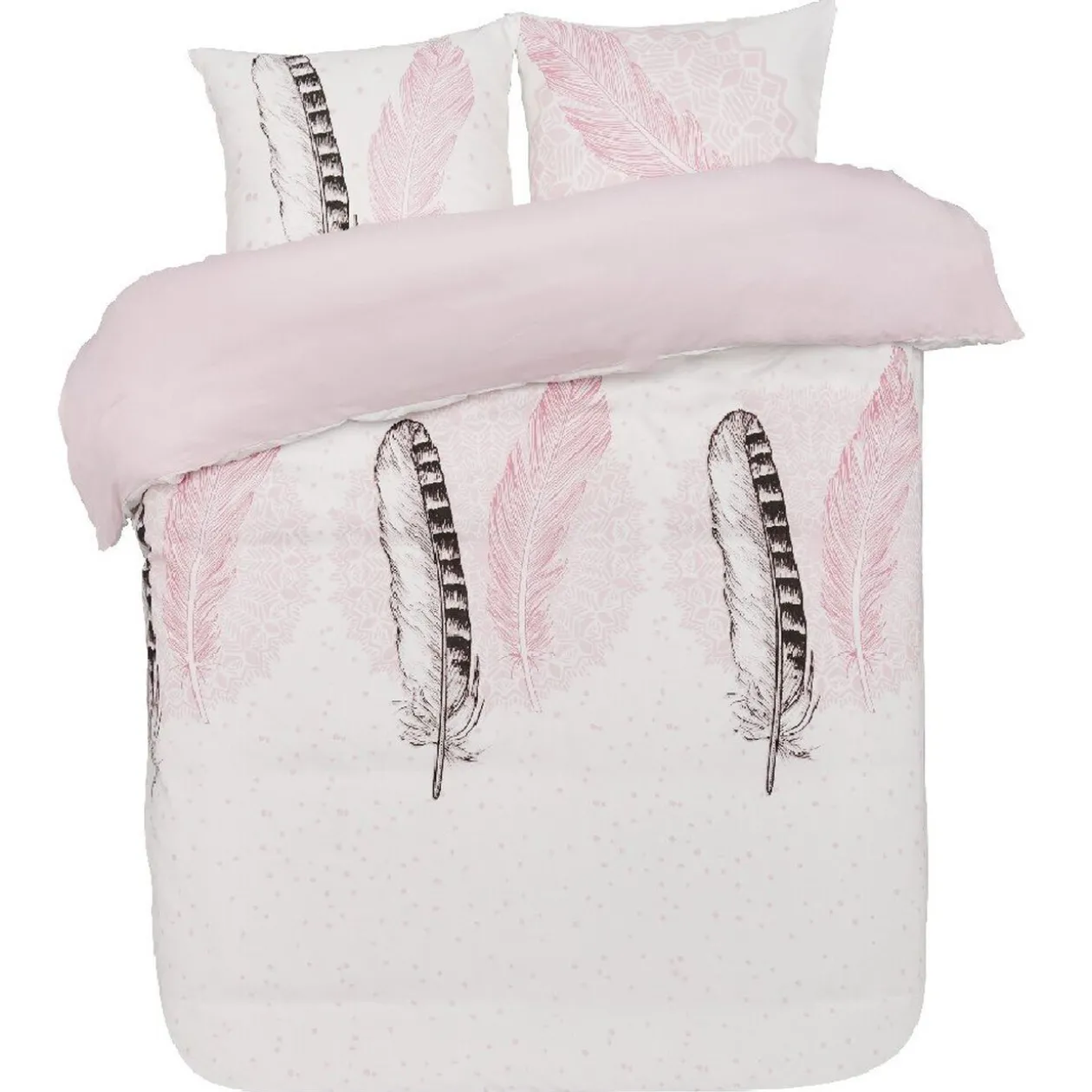 Une décoration romantique dans votre chambre avec cette parure de lit blanche à plumes volantes roses. La housse de couette et sa note rose poudré convient parfaitement à une décoration romantique avec ses 2 taies d’oreillers assorties. Réversible, retournez la housse pour encore plus de rose et une couleur unie.