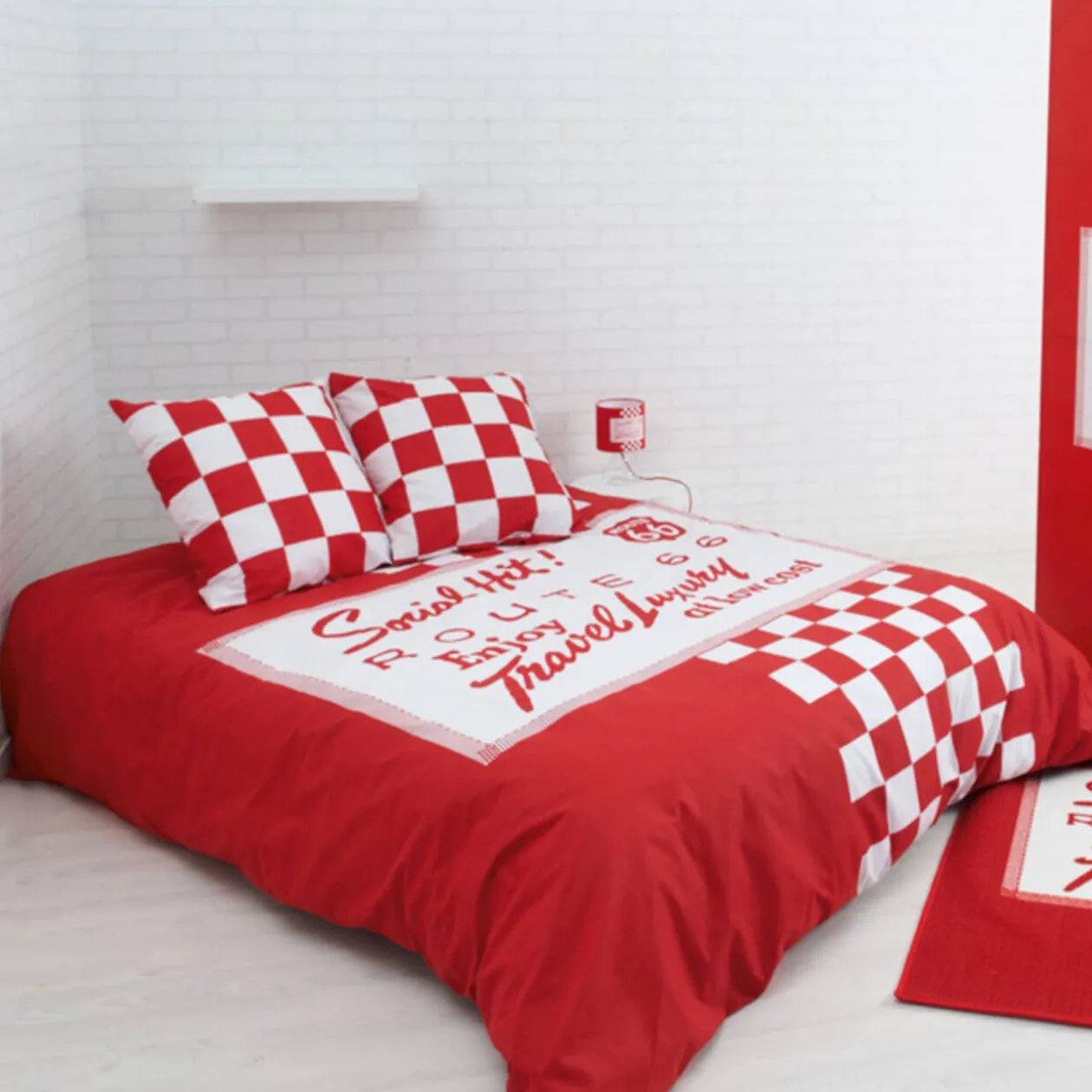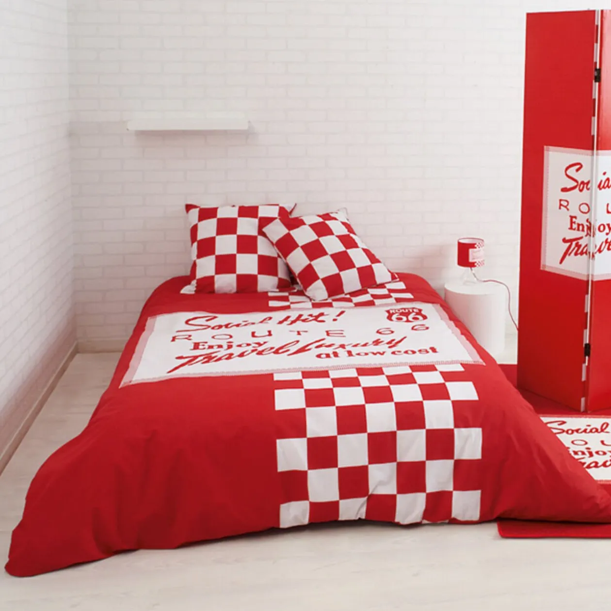 Comprend : 1 housse de couette 220×240 cm, 2 taies d’oreillers 63×63 cm, 100 % coton. 2013 Tempting Brands AG all rights reserved. Route 66 is a registred trademark.