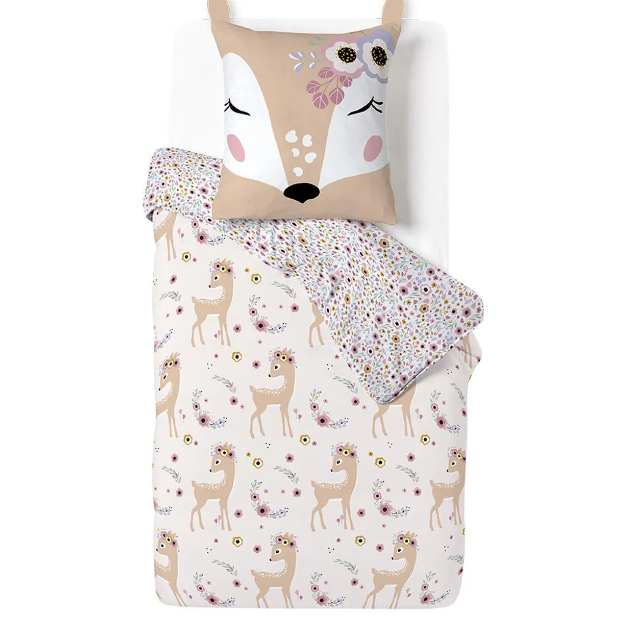 D’un côté des motifs de faons tout mignons agrémentés de fleurs et d’un autre côté un magnifique imprimé floral.