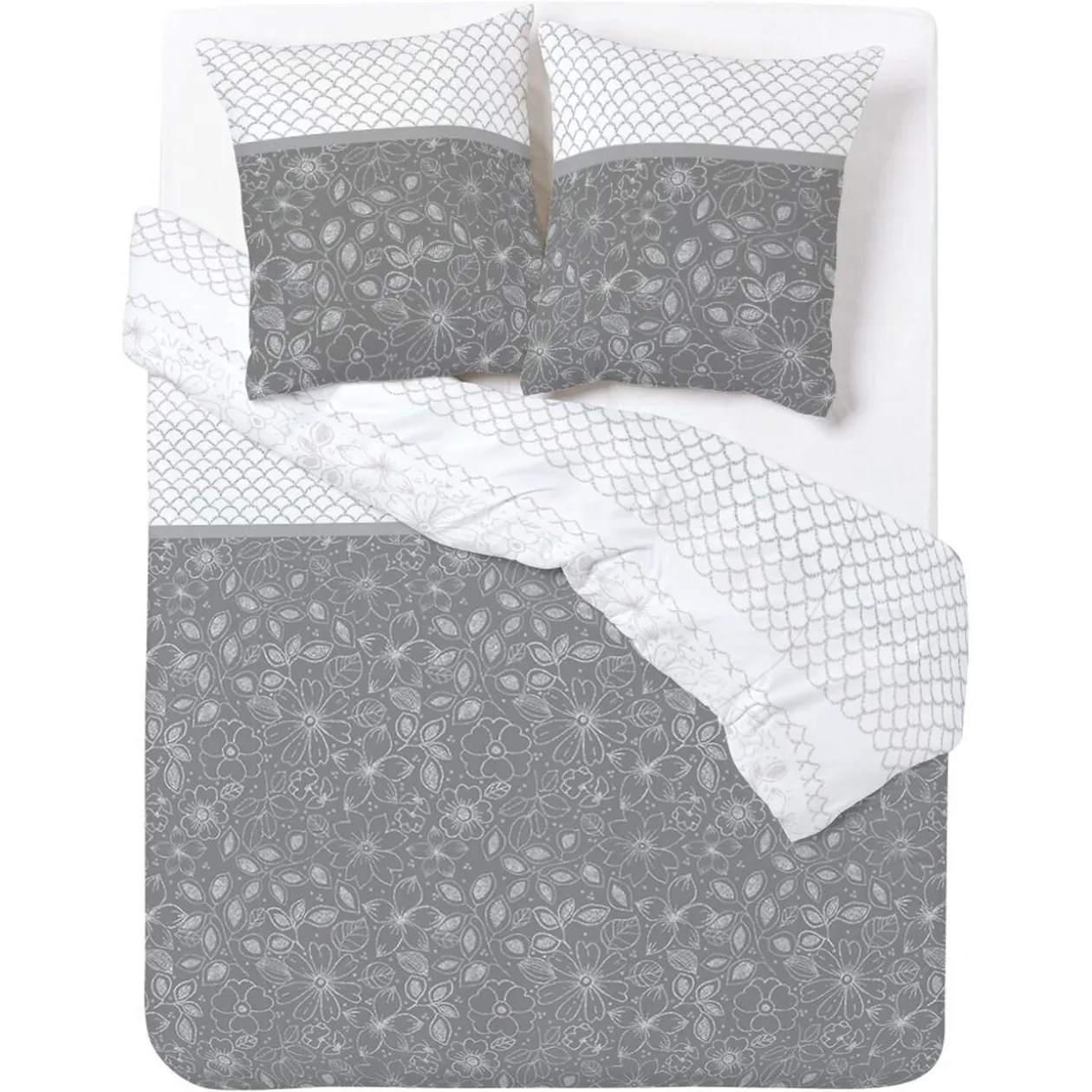 Plaid déco réversible gris bordure rose motif arabesque doux