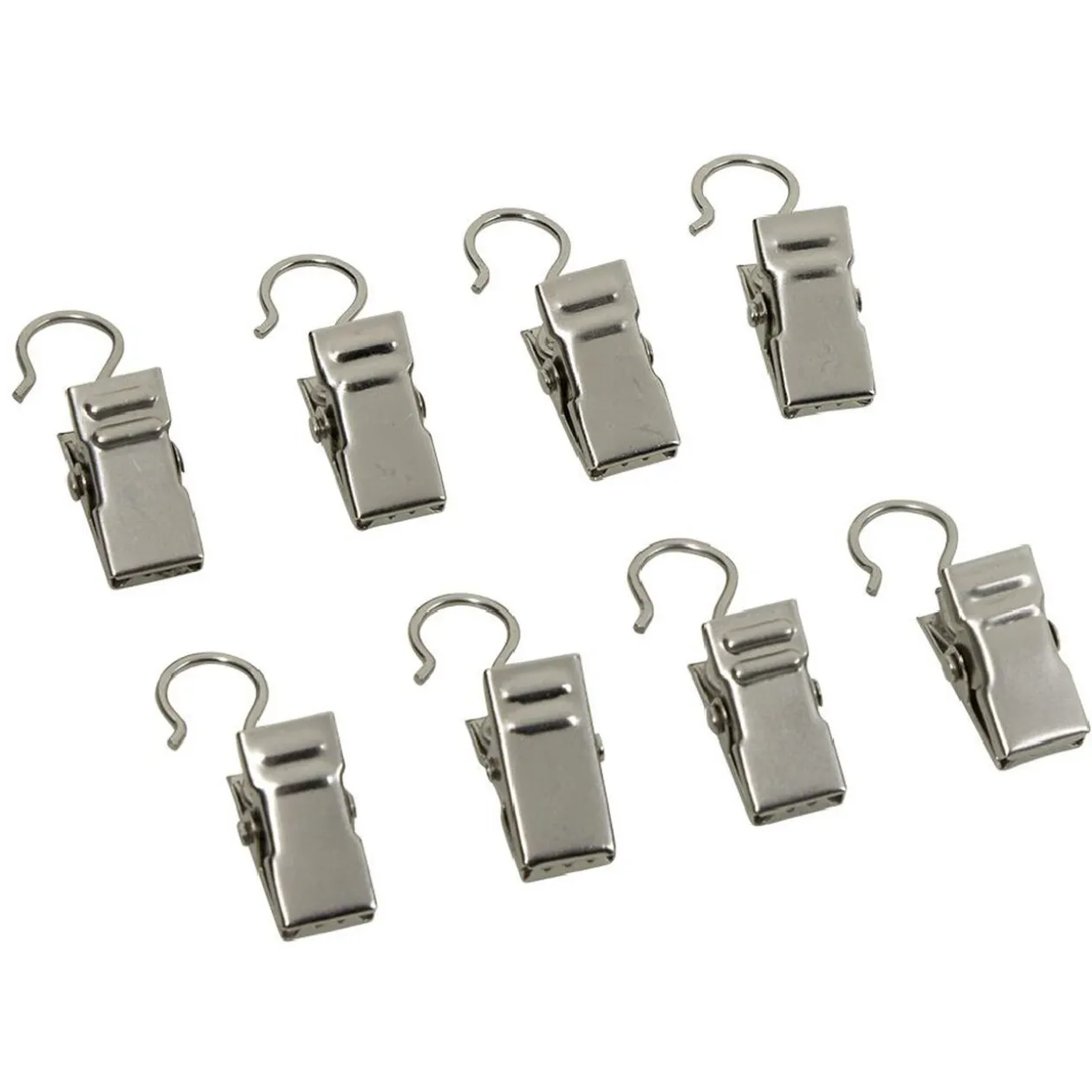 Lot de 8 pinces clips en métal gris chormé, idéal pour attacher joliement vos rideaux.