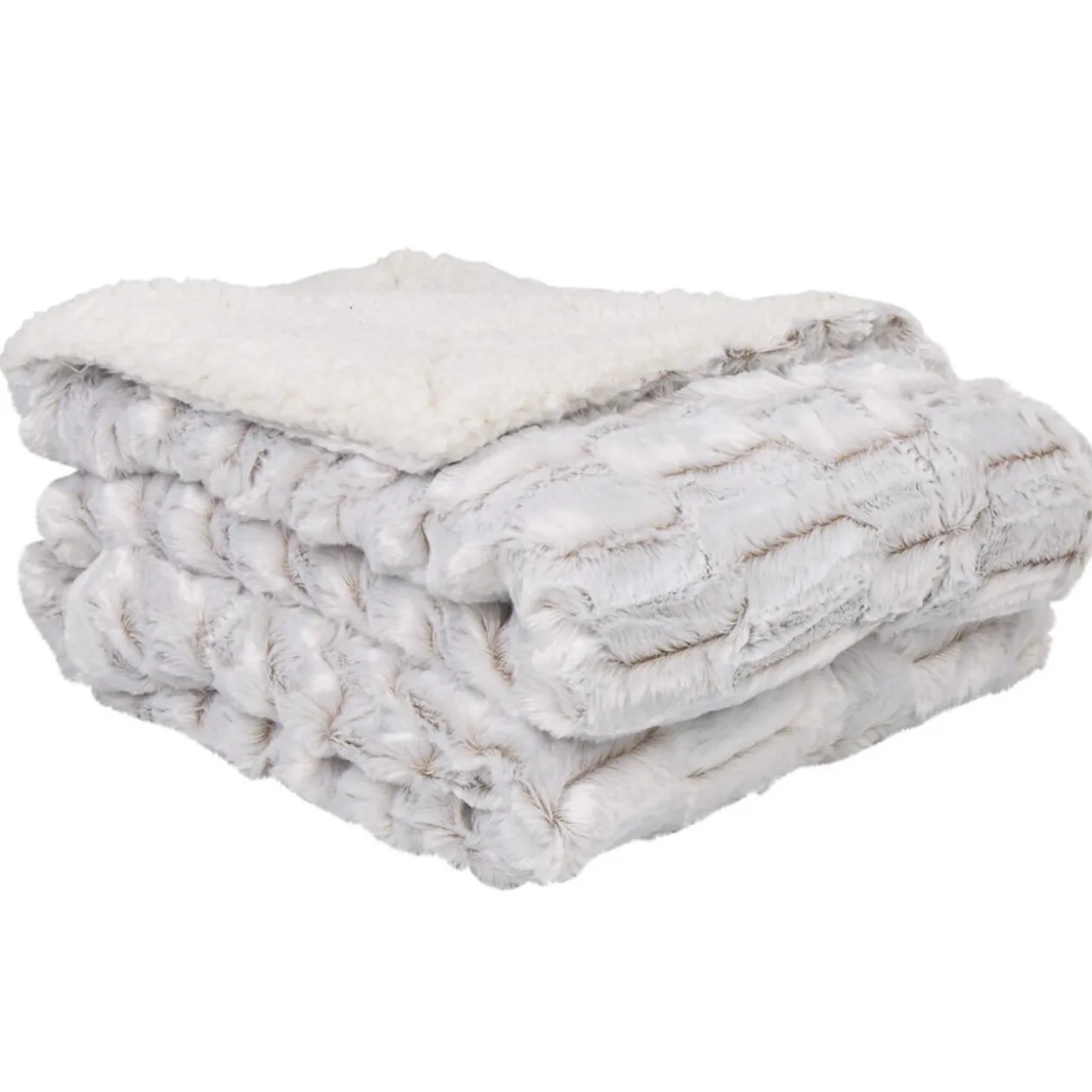 Plaid beige/blanc dessus degradé et dessous sherpa, dim. 130×160 cm, polyester.