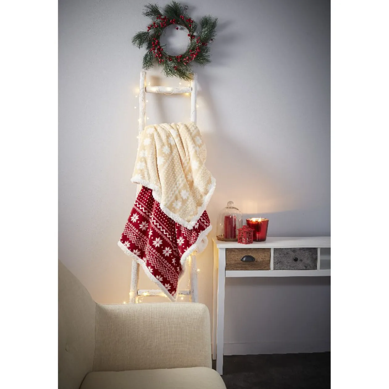 Avec ce plaid mi flanelle mi sherpa aussi doux qu’un poussin, vous passerez l’hiver au chaud. Le côté jaune pâle adoucira et égayera votre intérieur en même temps. Pour la période de Noël, les petits edelweiss blancs seront parfaits sur votre canapé ou votre lit. Ce plaid bi-matière réchauffera le mois de décembre pour réaliser des soirées cocooning à souhait.