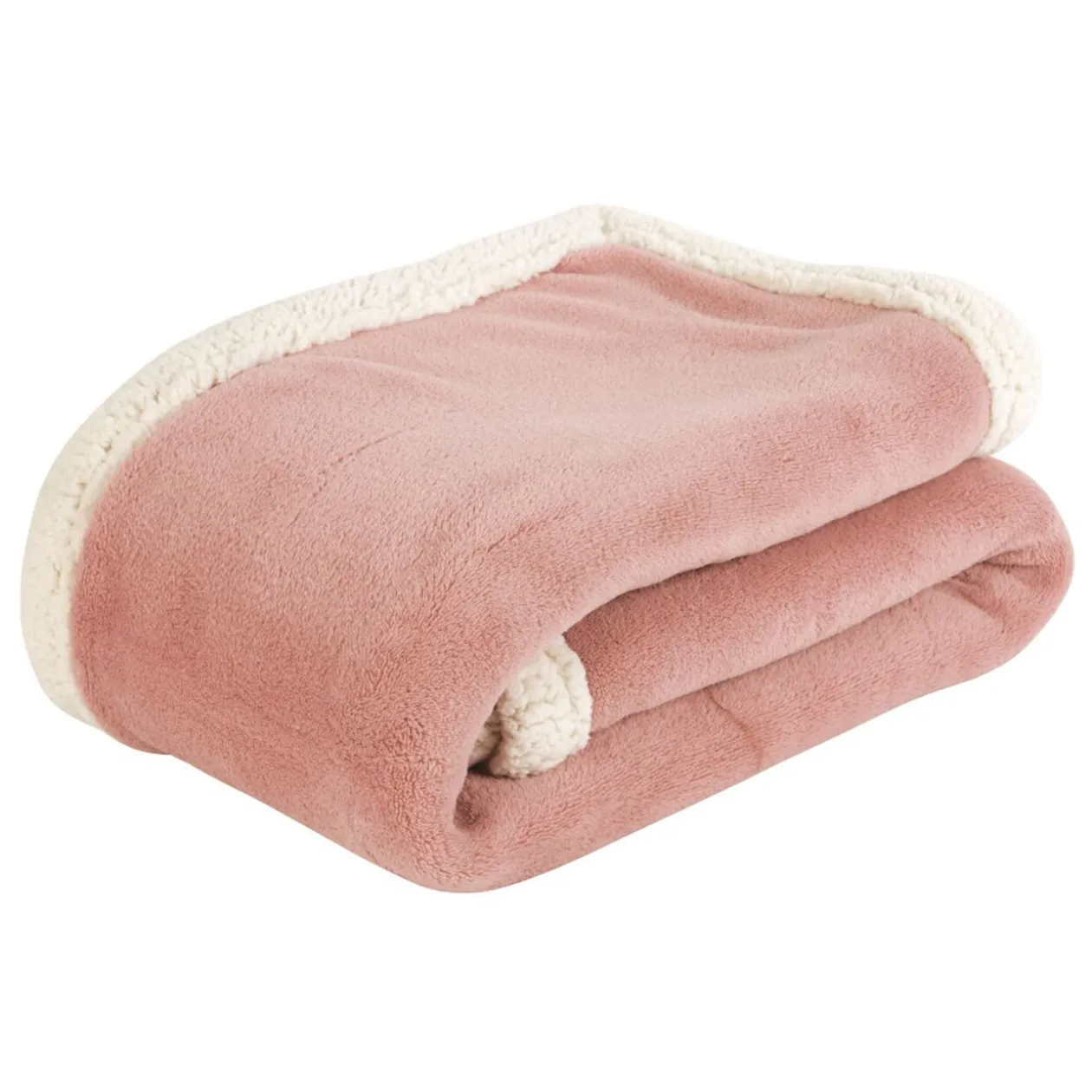Plaid bi-matière rose, dim. 127×152 cm, polyester microfibre, dos sherpa.