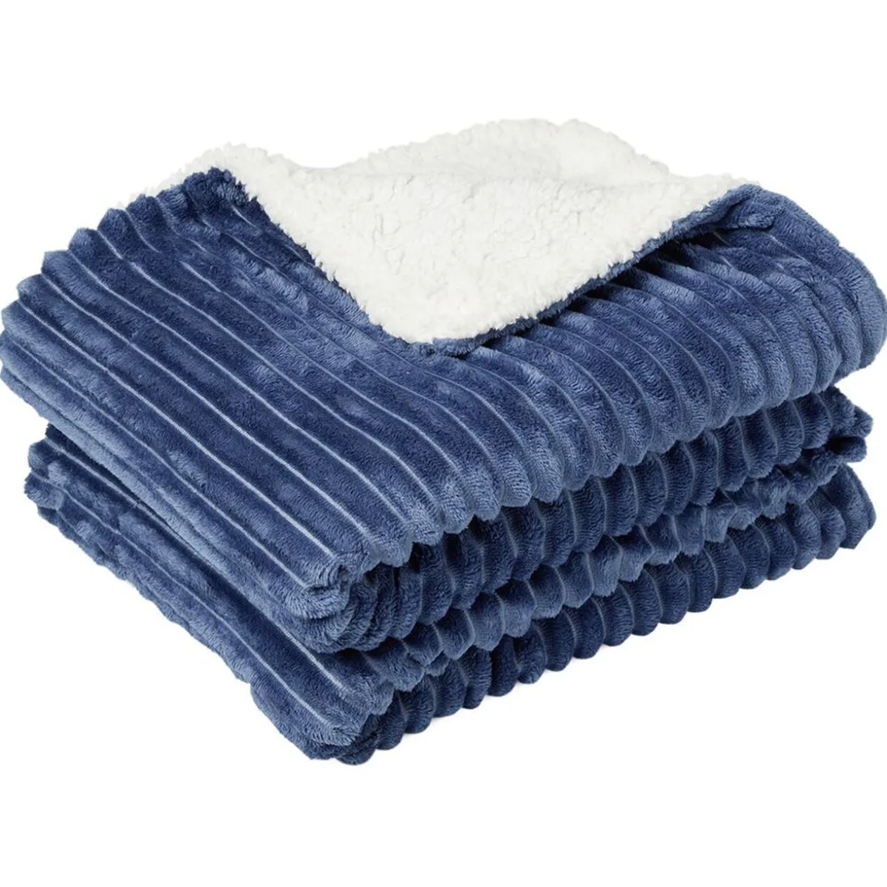 Plaid en polyester ondulé bleu avec revers en fausse fourrure blanche ultra doux et de grande taille, il apportera également du relief à votre décoration.