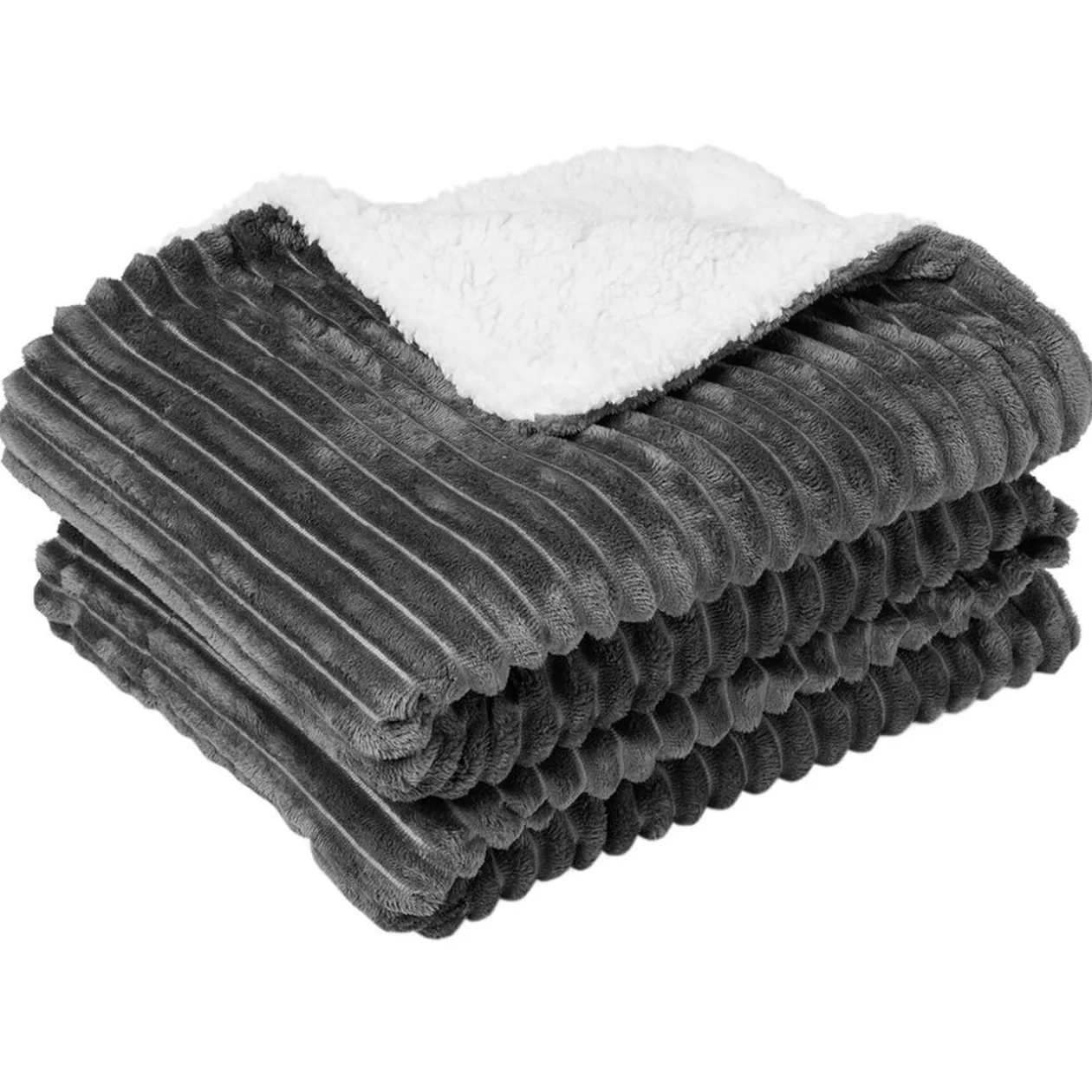 Plaid en polyester ondulé gris avec revers en fausse fourrure blanche ultra doux et de grande taille, il apportera également du relief à votre décoration.