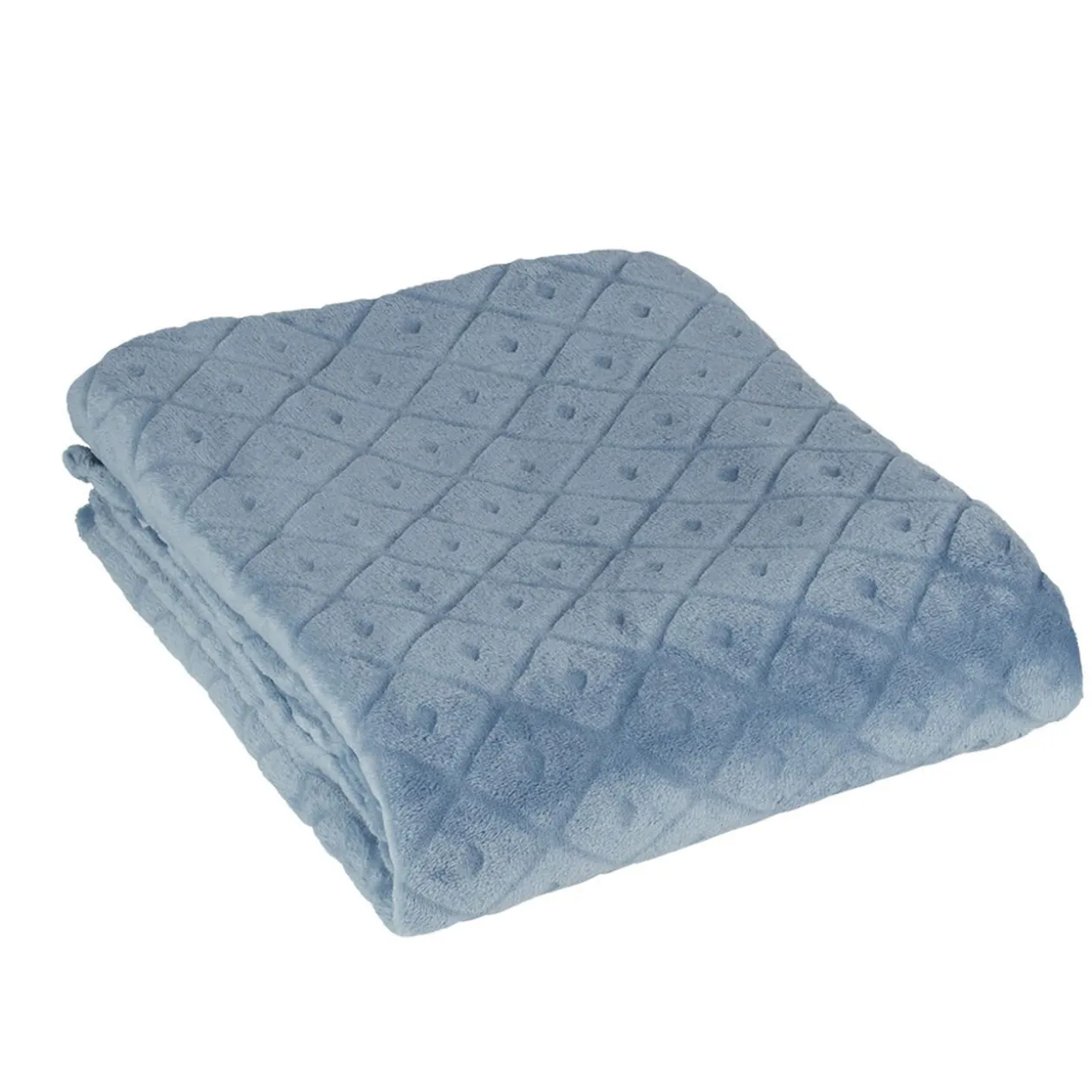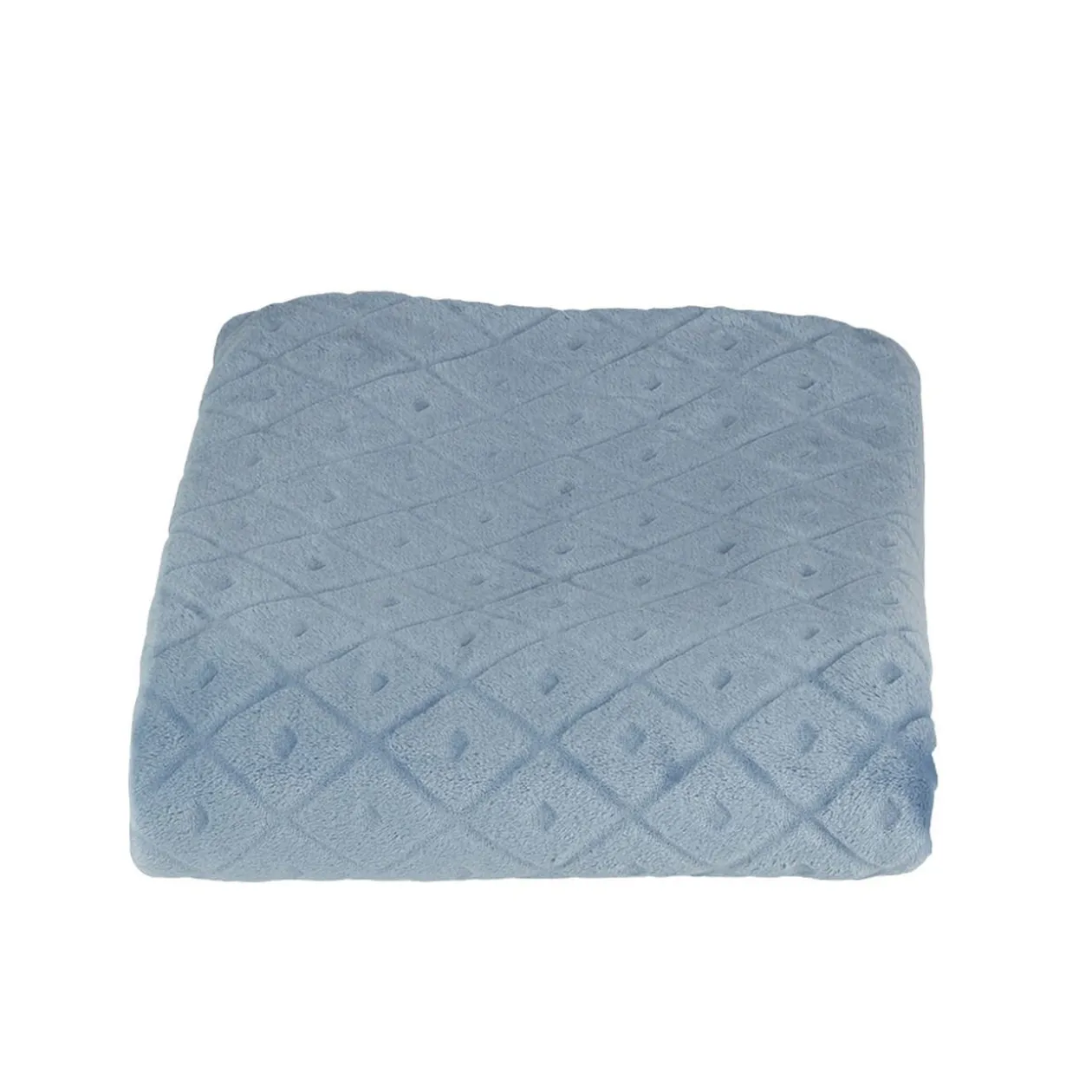 Ajoutez une belle touche déco et de la douceur à votre intérieur avec ce plaid en flanelle uni bleu et relief losanges. Ultra douillet, il sera parfait pour tous vos moments de détente sur le canapé ou le lit!