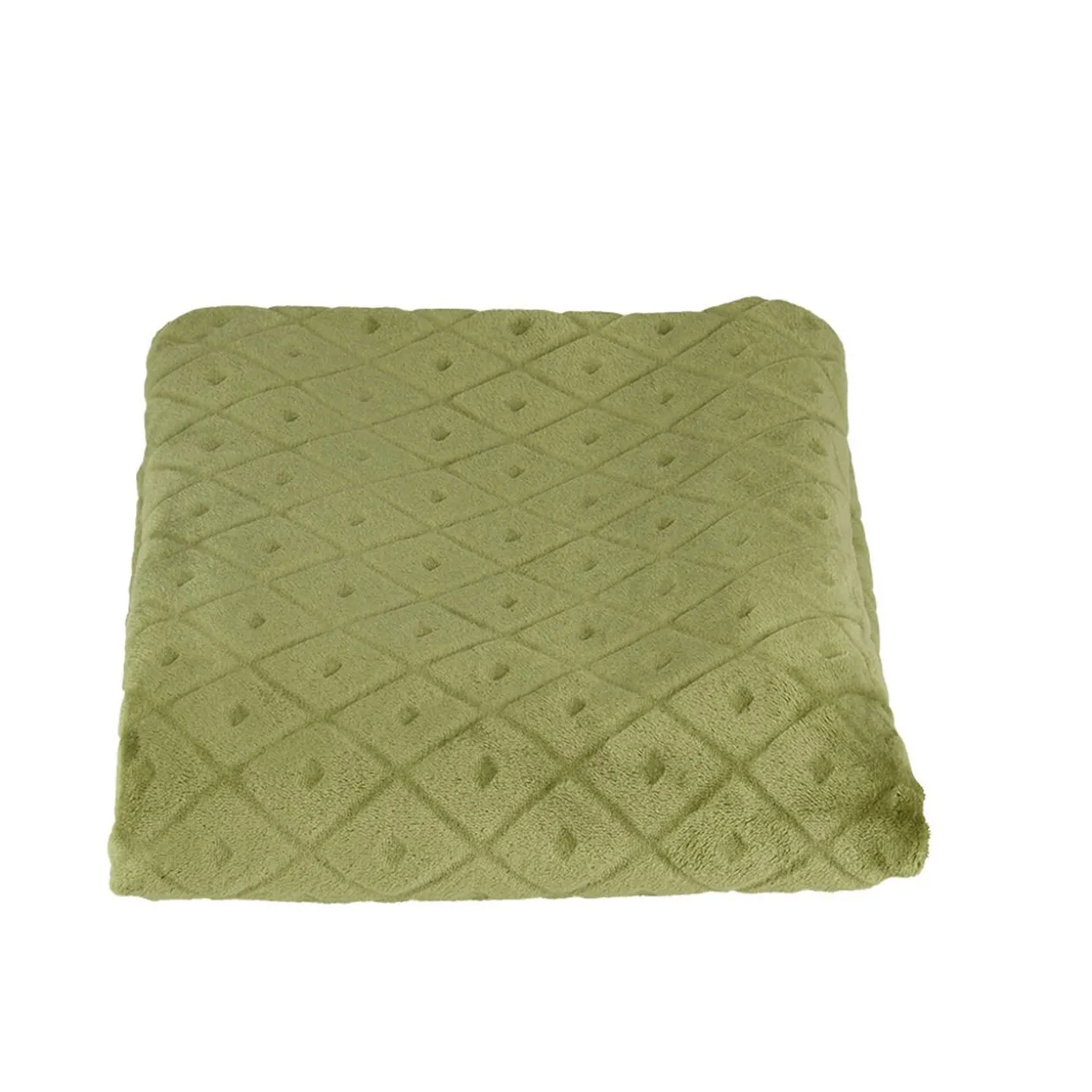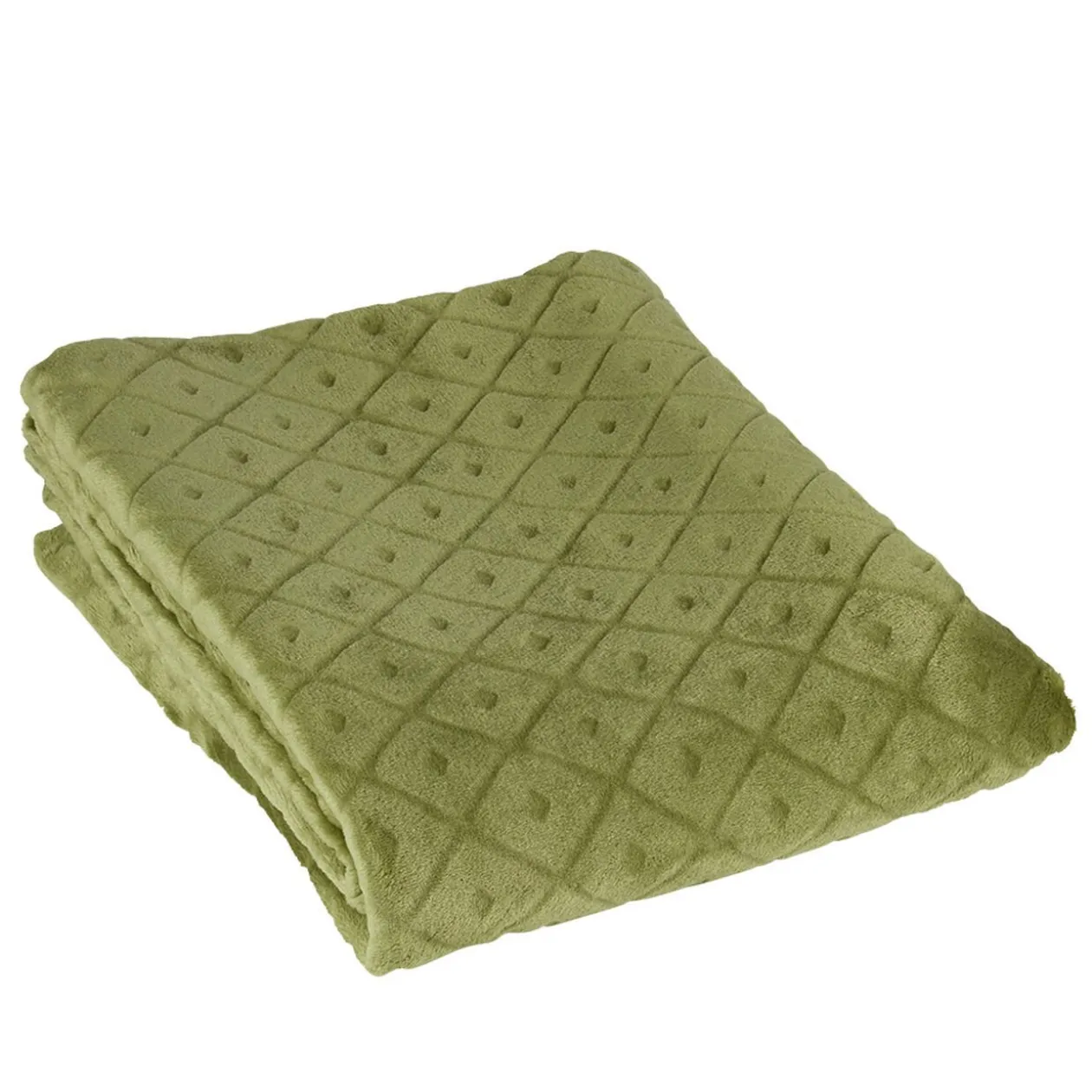 Apportez du style et confort à votre intérieur avec ce joli plaid en flanelle uni vert et relief losanges. Ultra douillet, il sera parfait pour tous vos moments de détente sur le canapé ou le lit!
