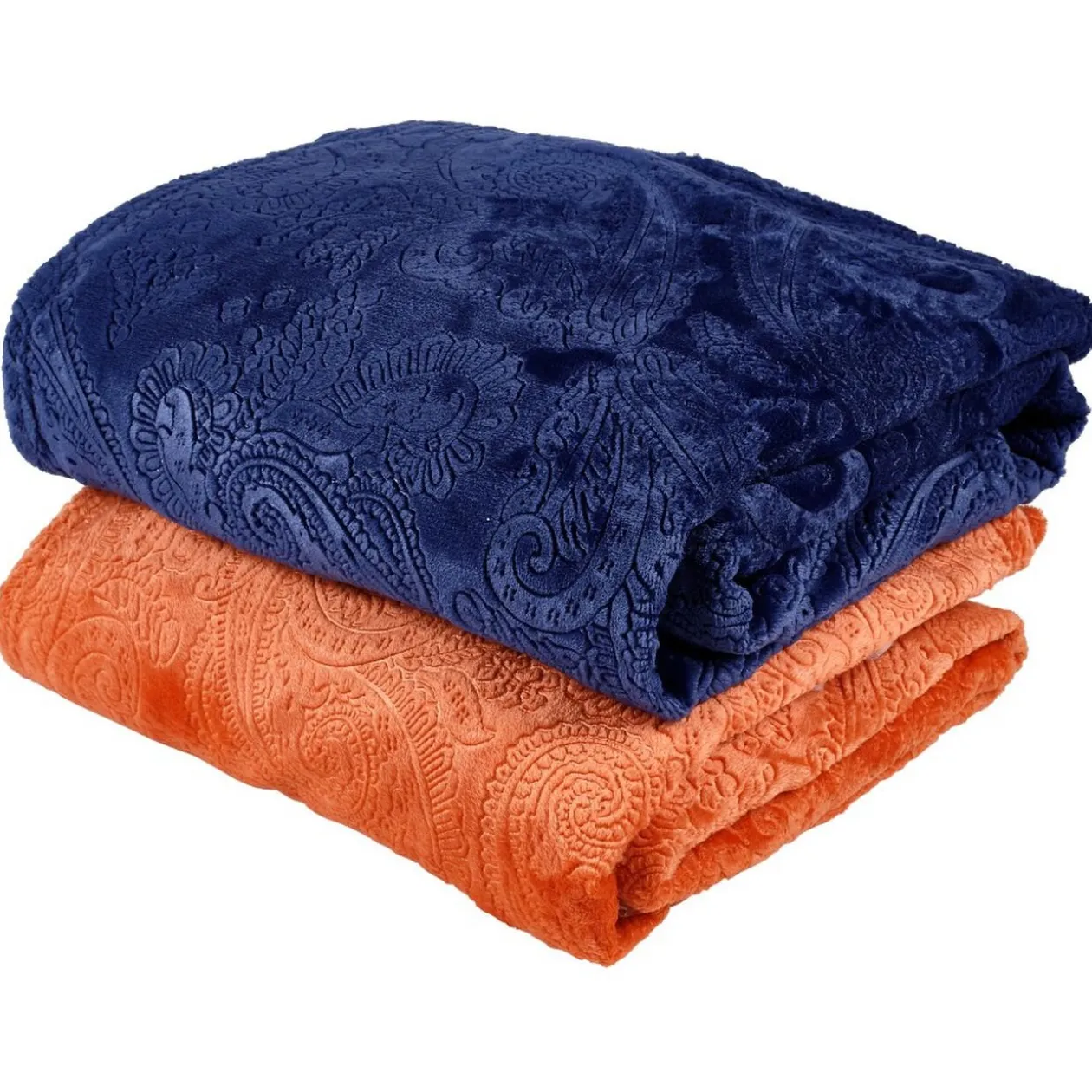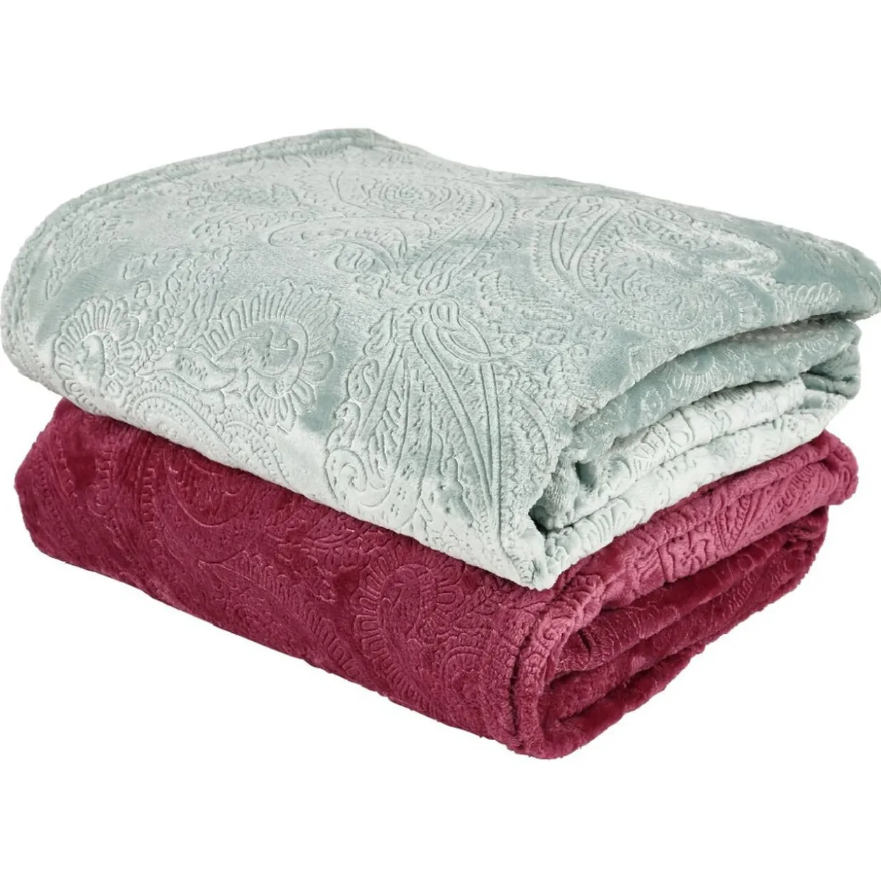 Plaid CORA FLEECE en polyester et flanelle embossé en violet, vert, bleu ou terracotta.