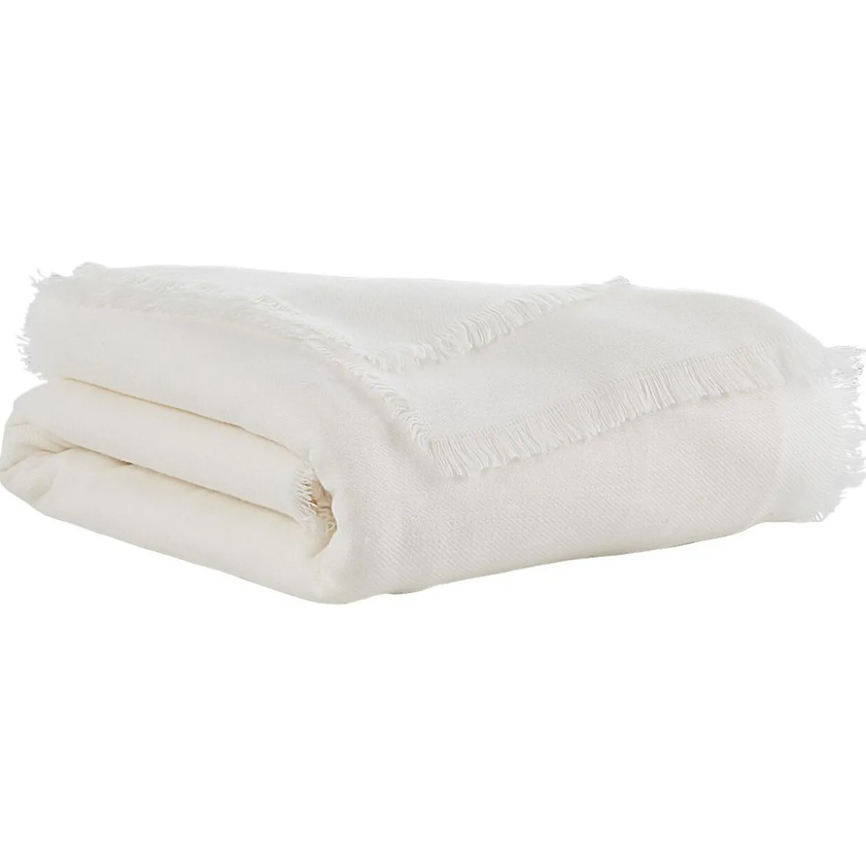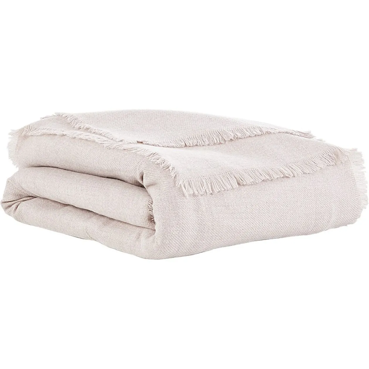 Plaid en polyester et acrylique en ivoire, gris ou rose poudré.