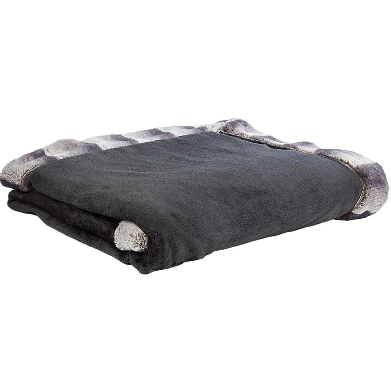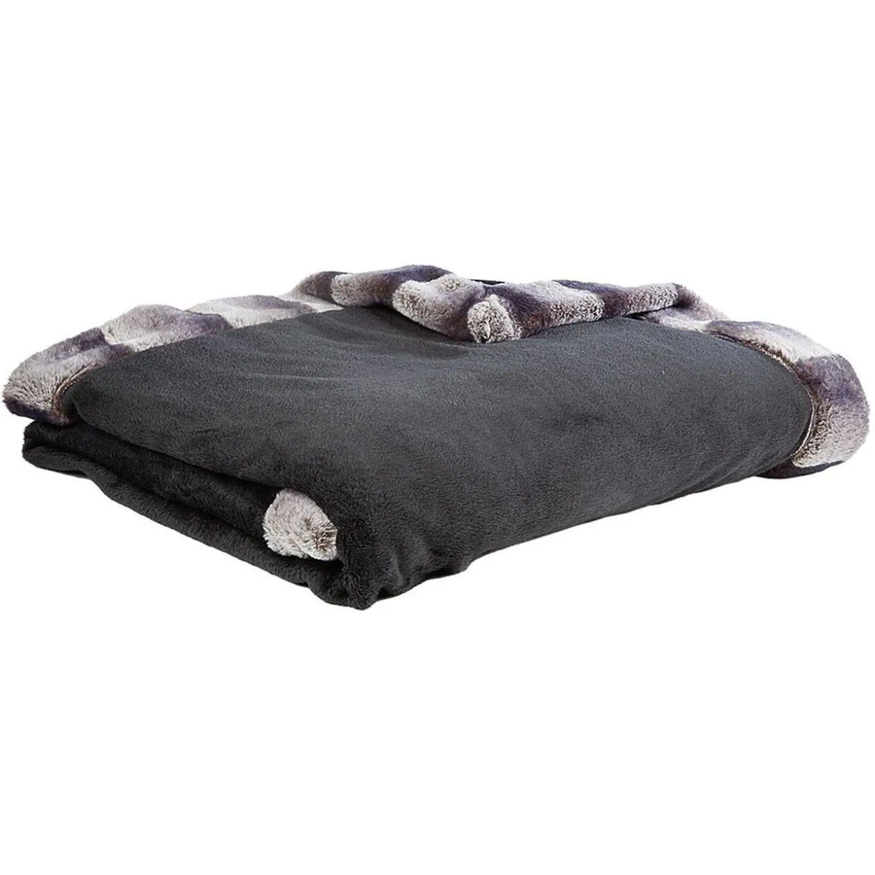 Plaid gris foncé avec bord en fausse fourrure marron.