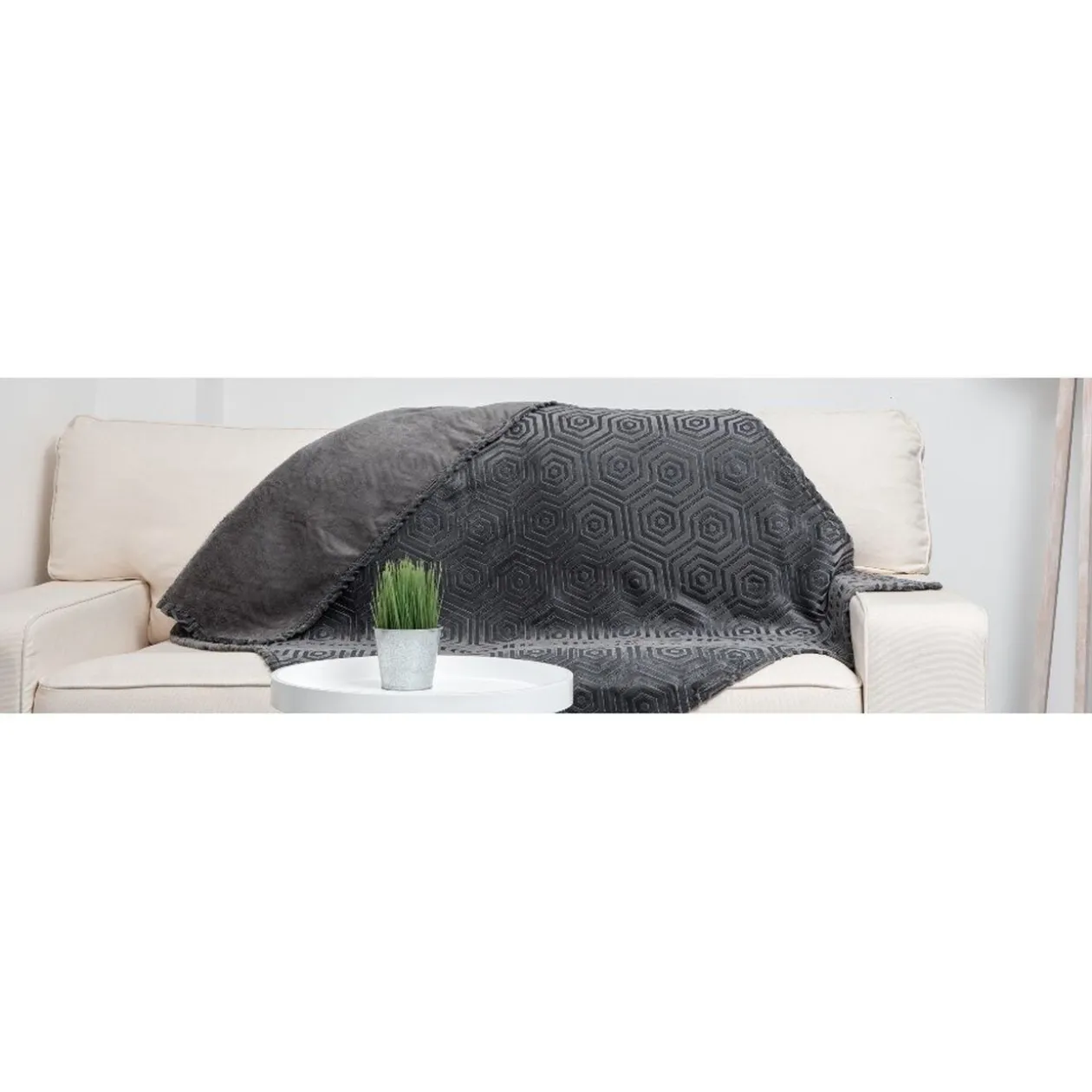 Ce plaid est de couleur gris foncé uni – Dimensions : . L130 x H160 cm – Matière : polyester