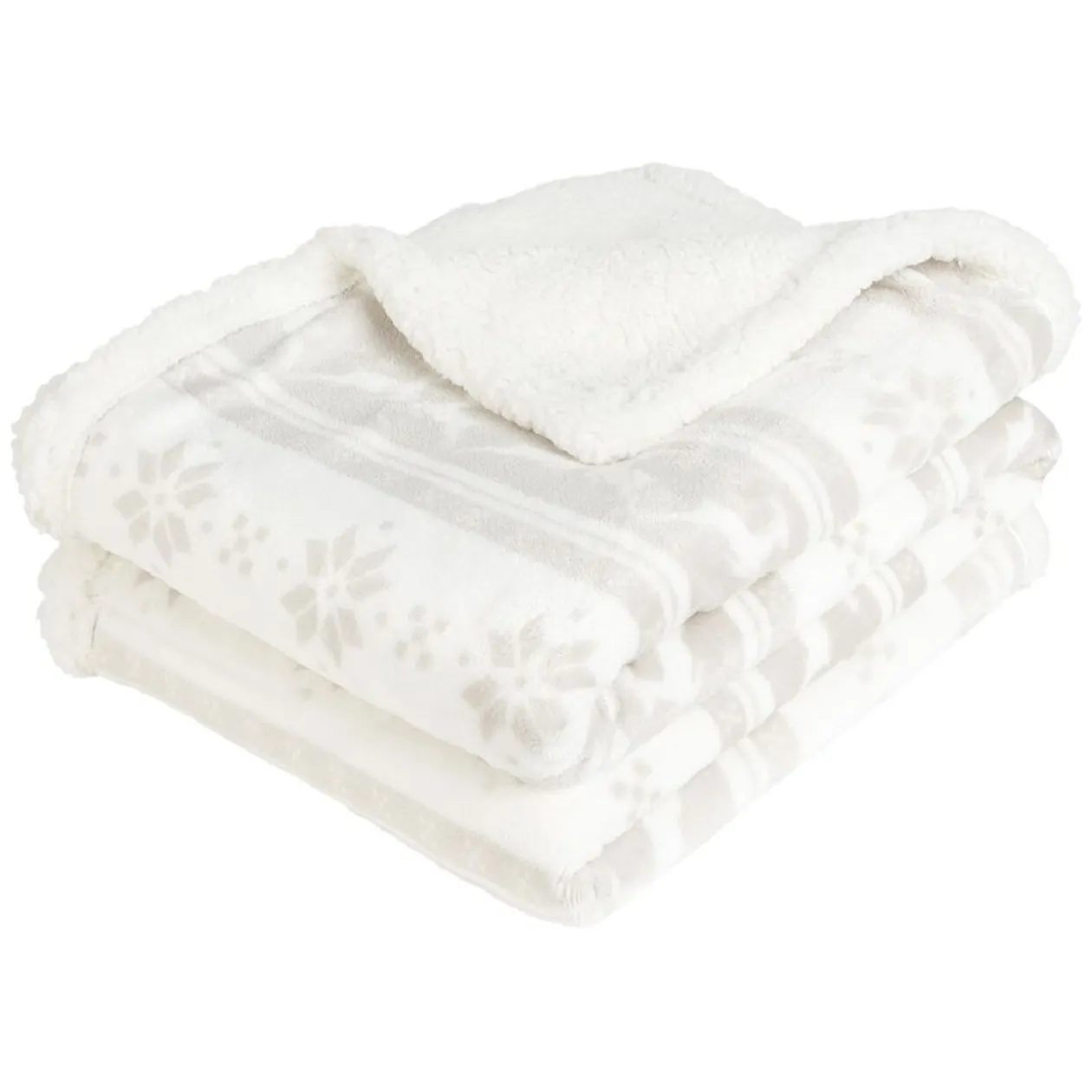 Lovez-vous au chaud bien emmitouflé dans ce charmant plaid à motif Noël gris et blanc.