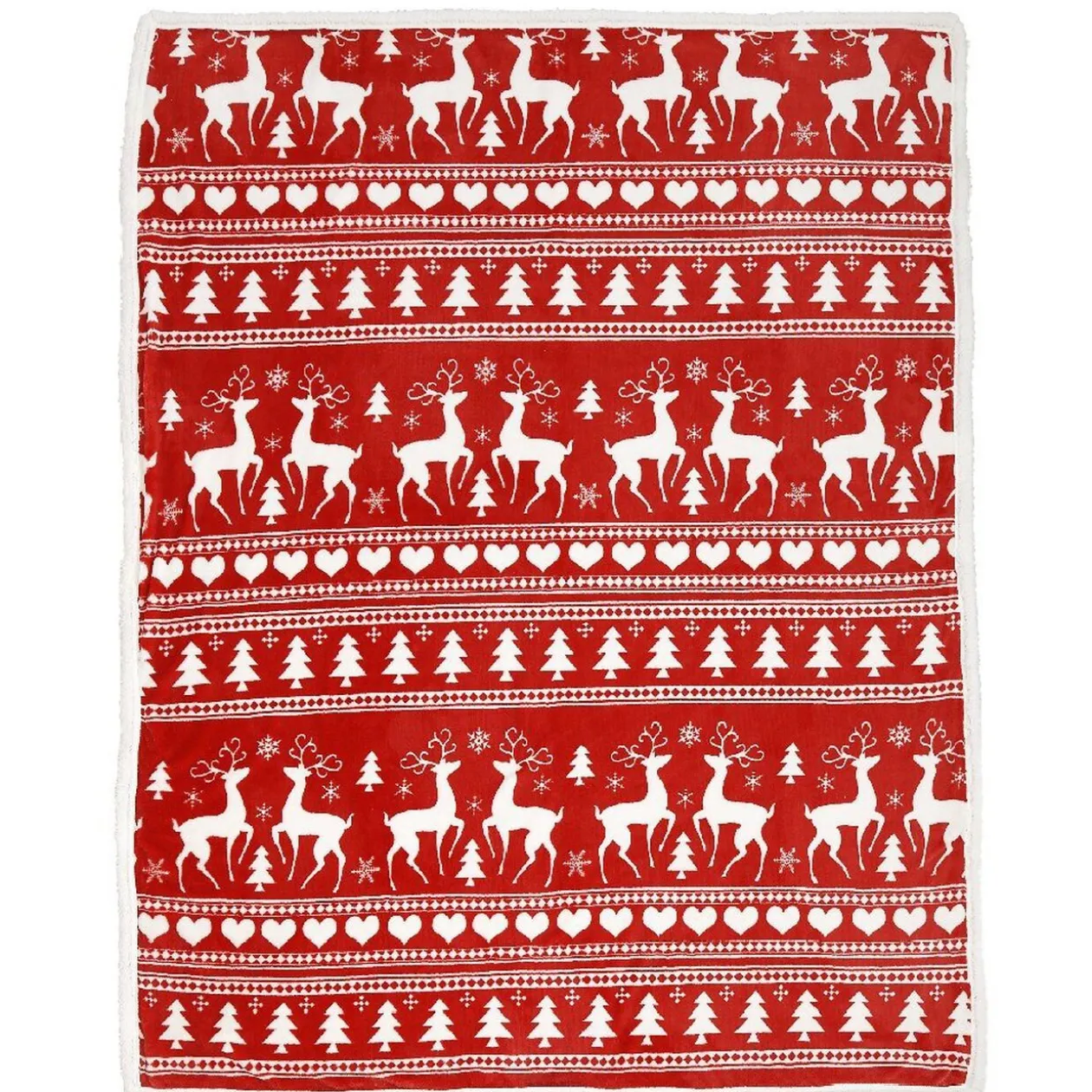 Plaid imprimé déco de Noël de couleur rouge et blanc.