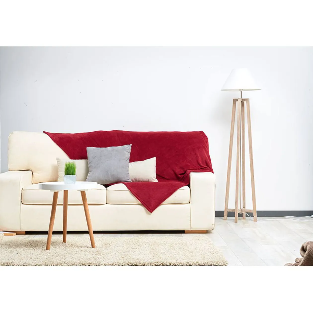 Après une journée froide et pluvieuse, rentrez au chaud et courrez sous votre plaid. Cette couleur unique rouge lie de vin donnera un certain charme à la décoration de votre chambre. L’effet velours marquera le côté luxueux d’un salon à la tendance maison de maître. Il pourra aussi apporter à une pièce un côté bohème chaleureux et romantique associé à quelques tulipes et un attrape-rêves.