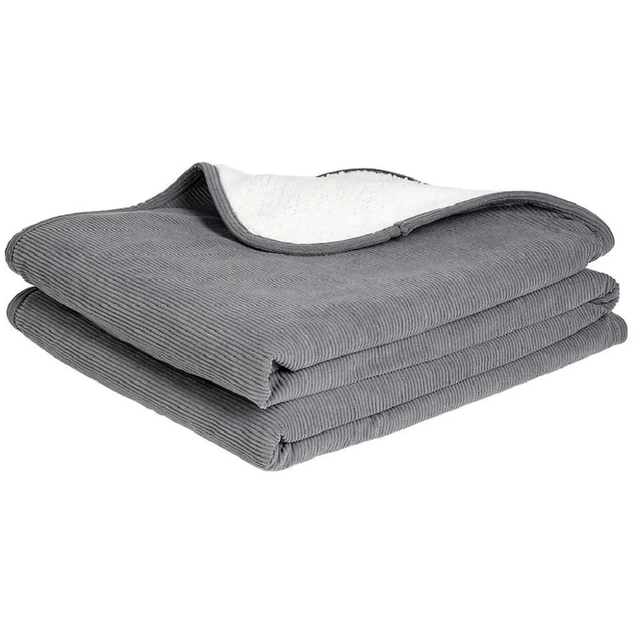 Côtelé gris, ce plaid avec doublure sherpa saura habiller avec style votre canapé ou lit durant les mois d’hiver.