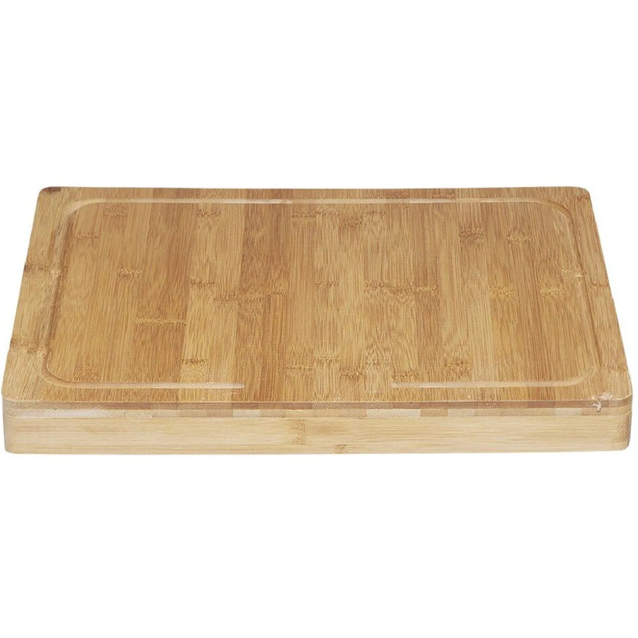 Planche à découper rectangulaire en bambou avec rigole à jus et rebord pour une parfaite tenue sur votre plan de travail.