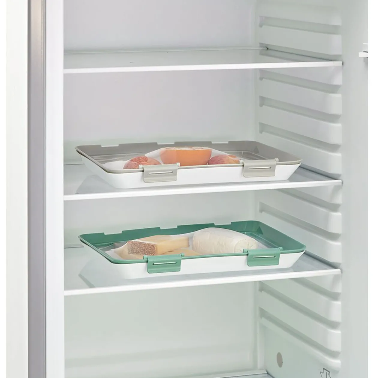 Ces 2 plateaux de conservation avec film souple, résistant et réutilisable à l’infini épousent la forme des aliments sans les écraser. Idéal pour la conservation de tous types d’aliments tels que viandes, poissons, fruits, légumes et plats cuisinés au réfrigérateur.